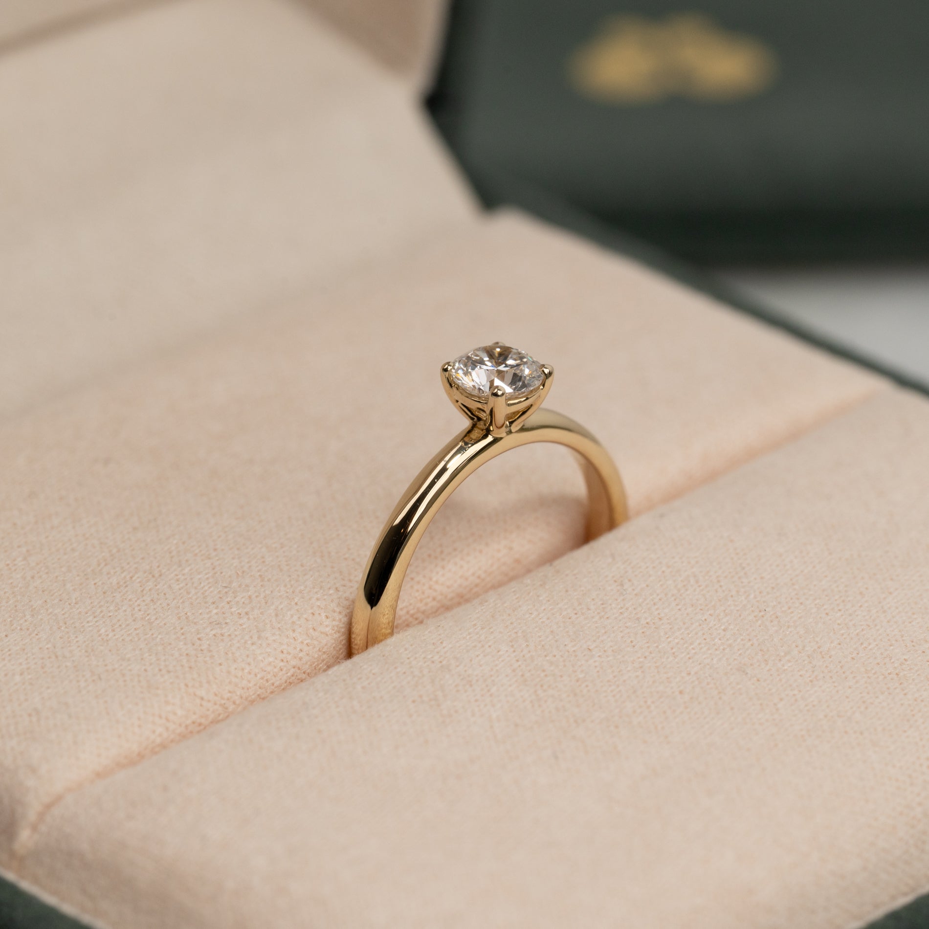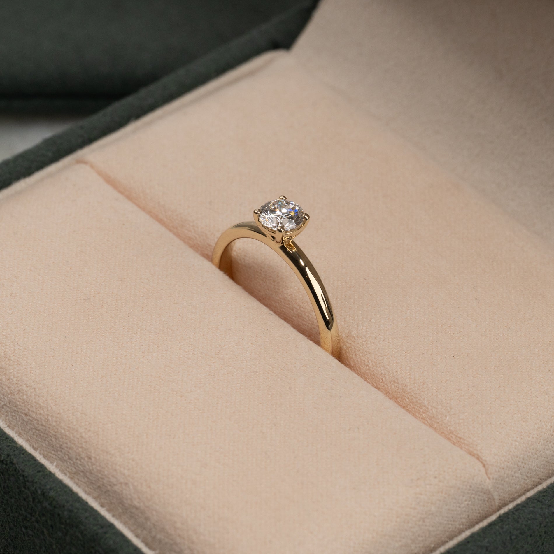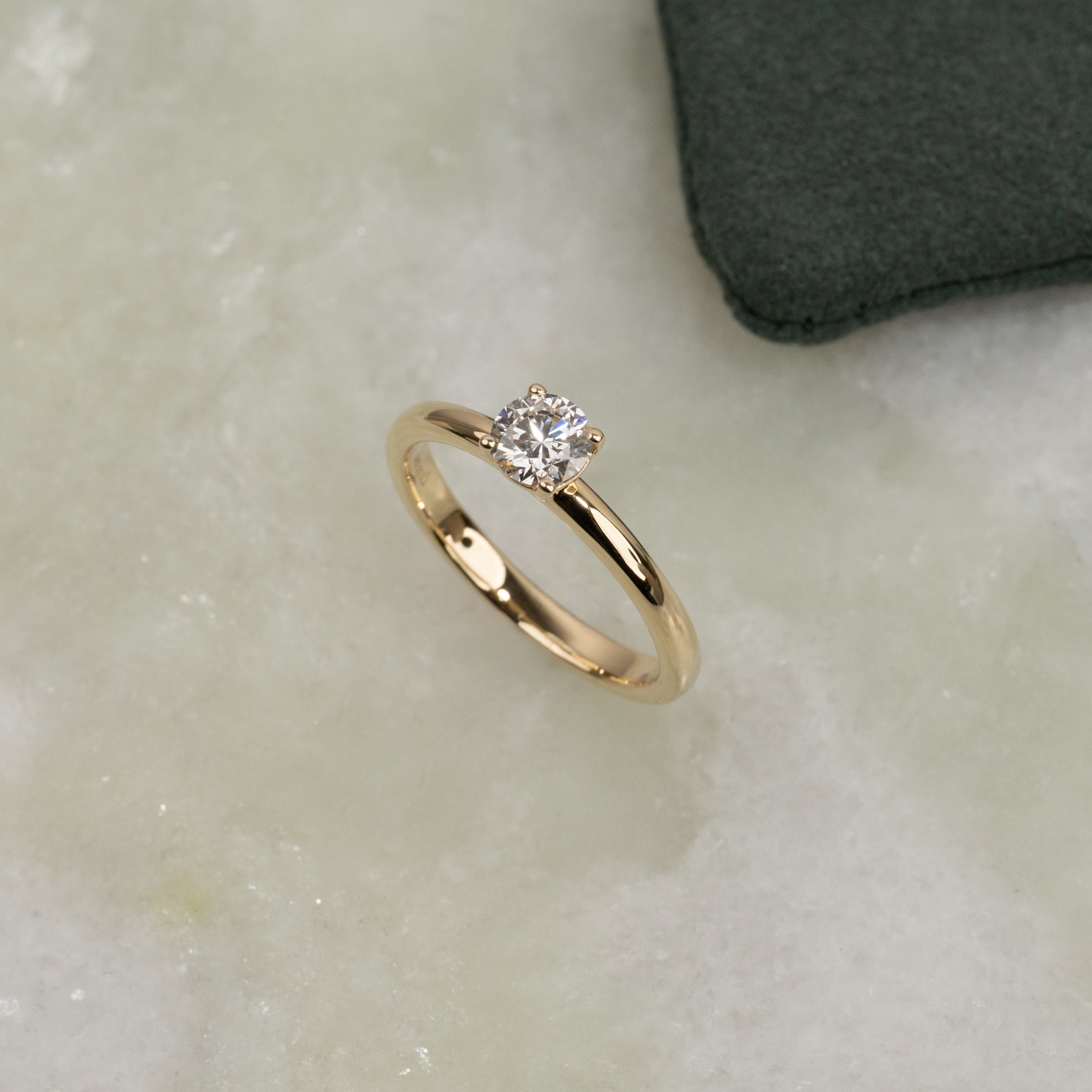 Ringen er laget i 14 karat massivt gull med en lab-grown diamant som har en vekt på 0,5 ct. (Ø5,1mm). Diamanten har fargen E/F (River) og klarhet VVS. Smykket er laget med omhu; diamantene er blant annet produsert ved hjelp av solenergi, og gullet er 100 % sertifisert resirkulert.