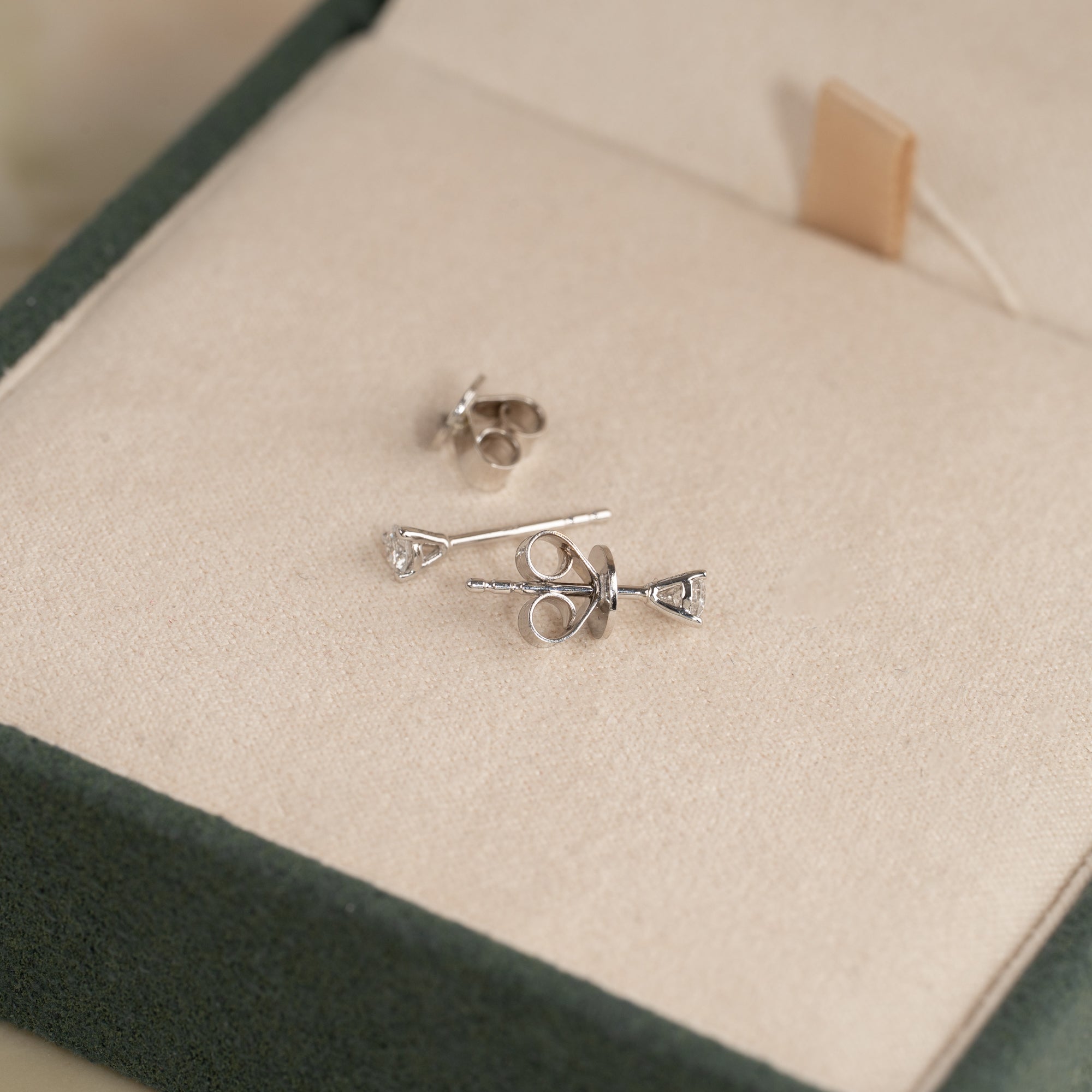Våre Solitaire diamantøredobber er laget i 14 karat massivt hvitt gull med lab-dyrkede diamanter på 0,2 carat.