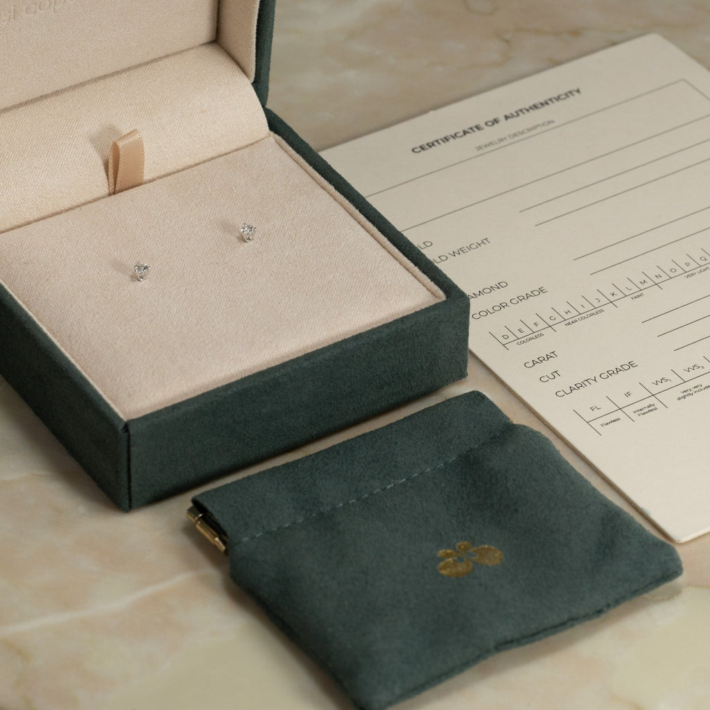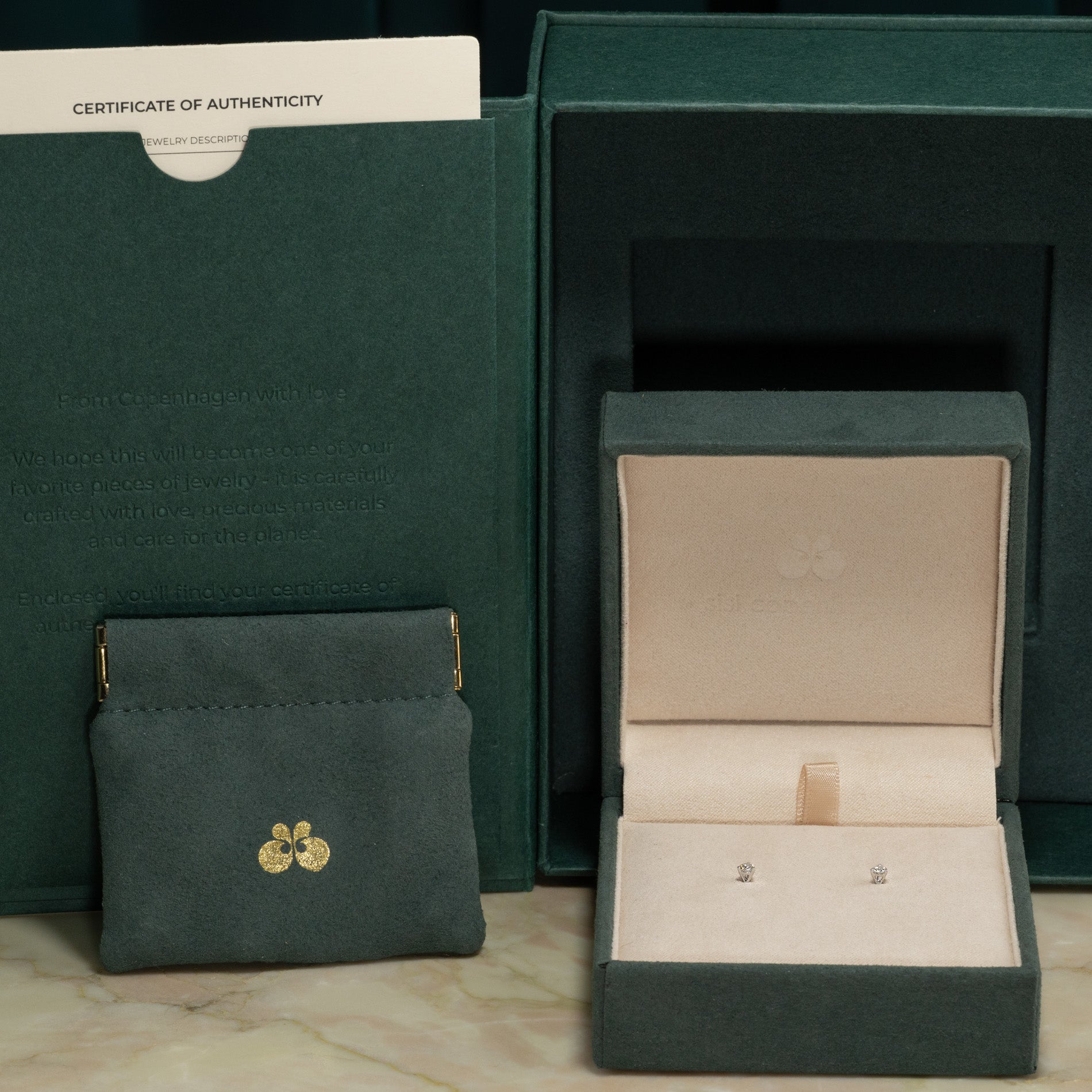 Øredobbene kommer i vår eksklusive Diamond Collection boks med en fin smykkeekse, diamant-sertifikat og pouch. Boksen er perfekt dersom smykket skal gis i gave.