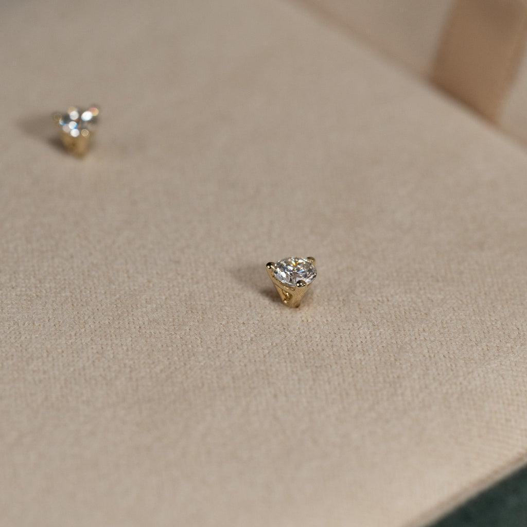 Våre Solitaire diamantøredobber er laget i 14 karat massivt gull med lab-dyrkede diamanter på 0,33 carat.