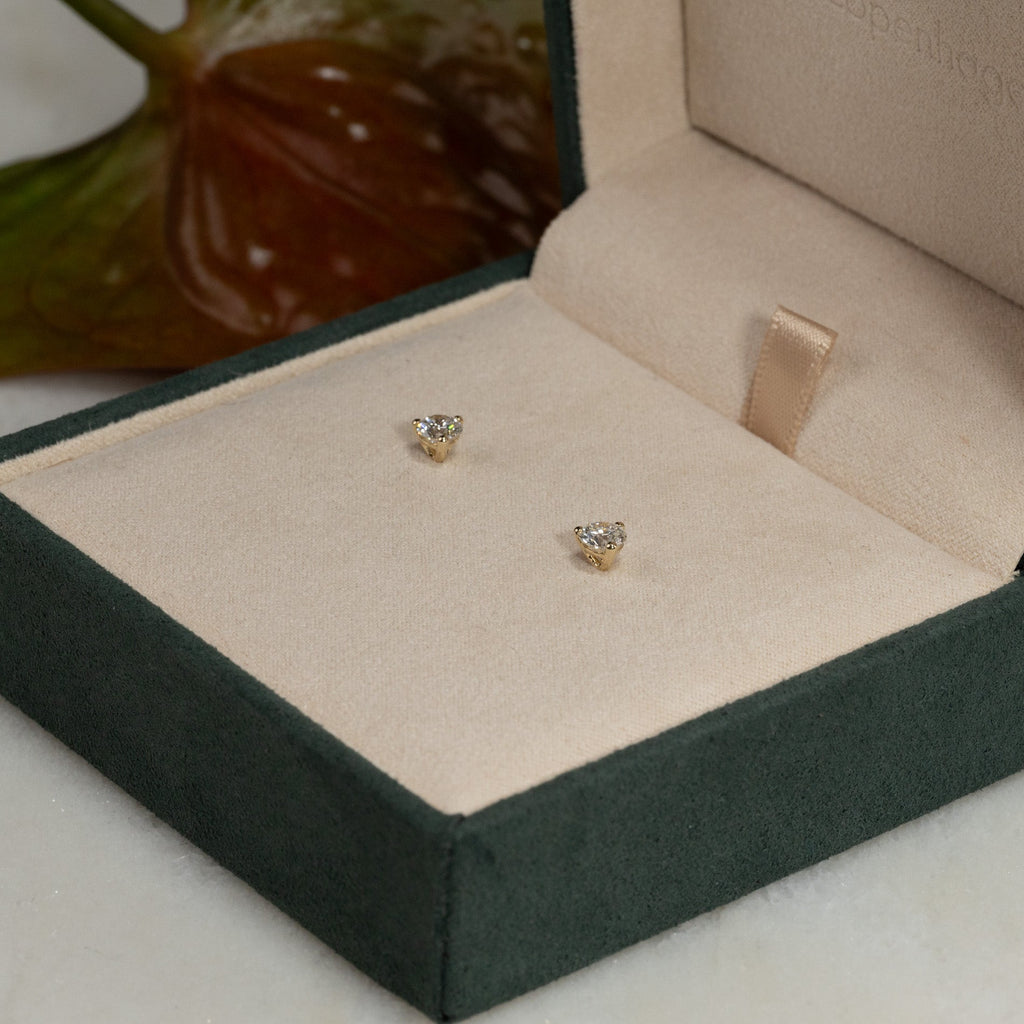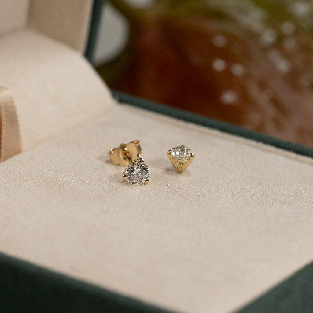 Våre Solitaire diamantøredobber er laget i 14 karat massivt gull med lab-dyrkede diamanter på 0,75 carat.