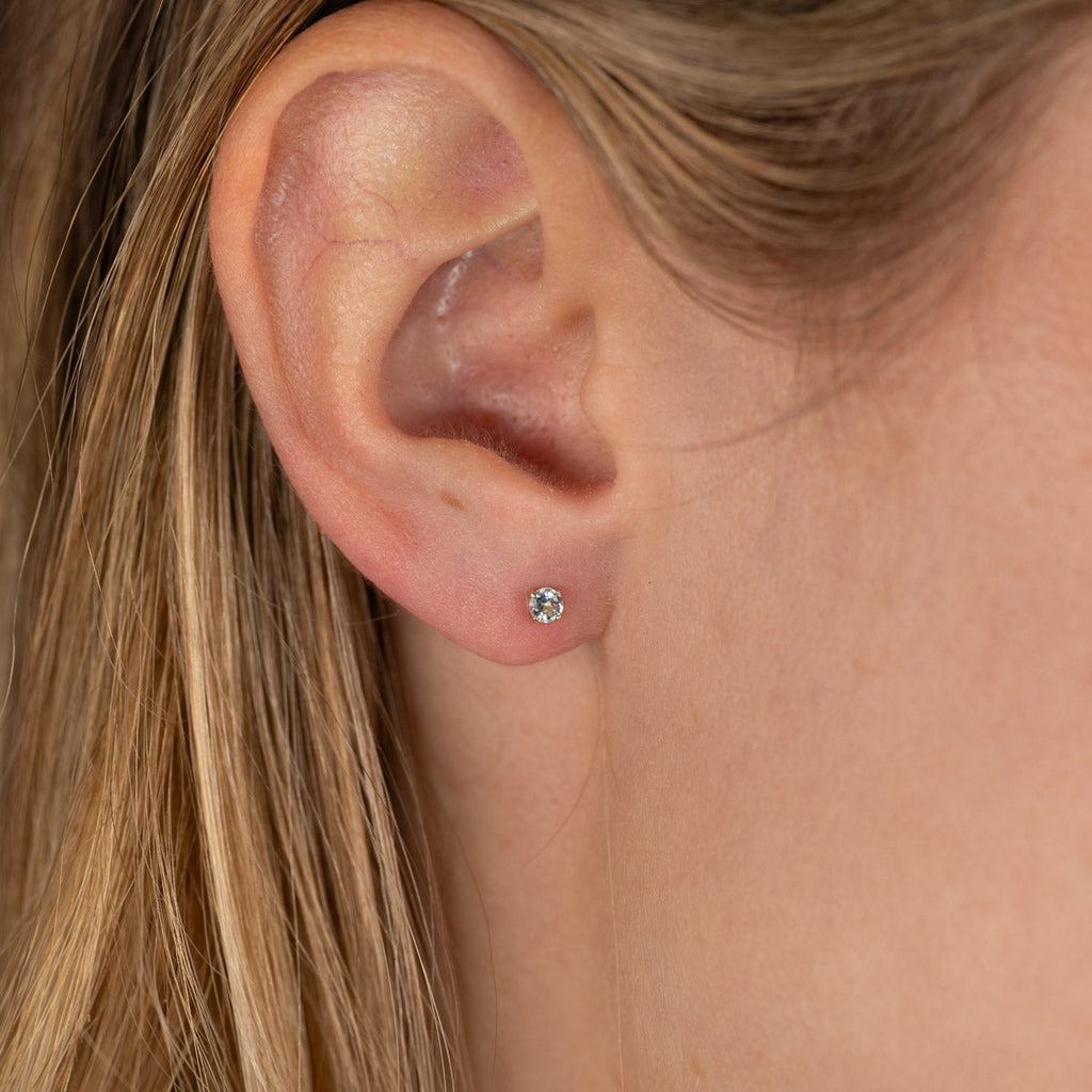 Øredobbene er laget i 100% resirkulert 9 karat massivt gull. Disse klassiske øredobbene har en fasettslipt, blå topas som sitter i en fin er omfatning. Stenen har en diameter på 3mm.