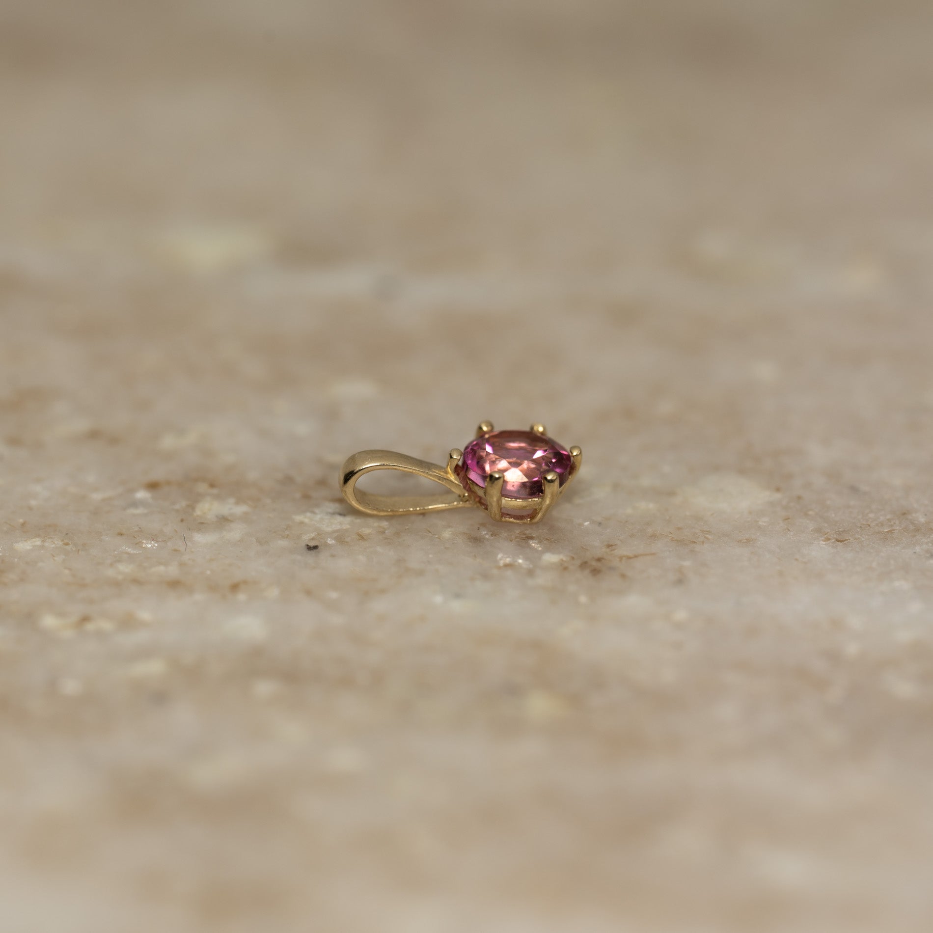 Anheng i massivt gull med en rosa topas