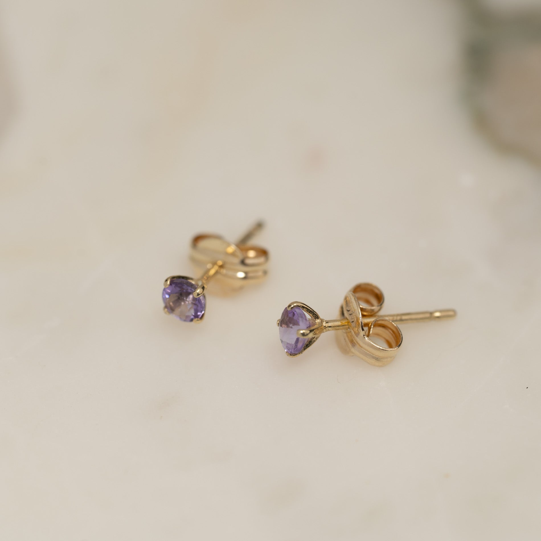 SOLEY PURPLE AMETHYST SOLID GOLD STUD EARRING