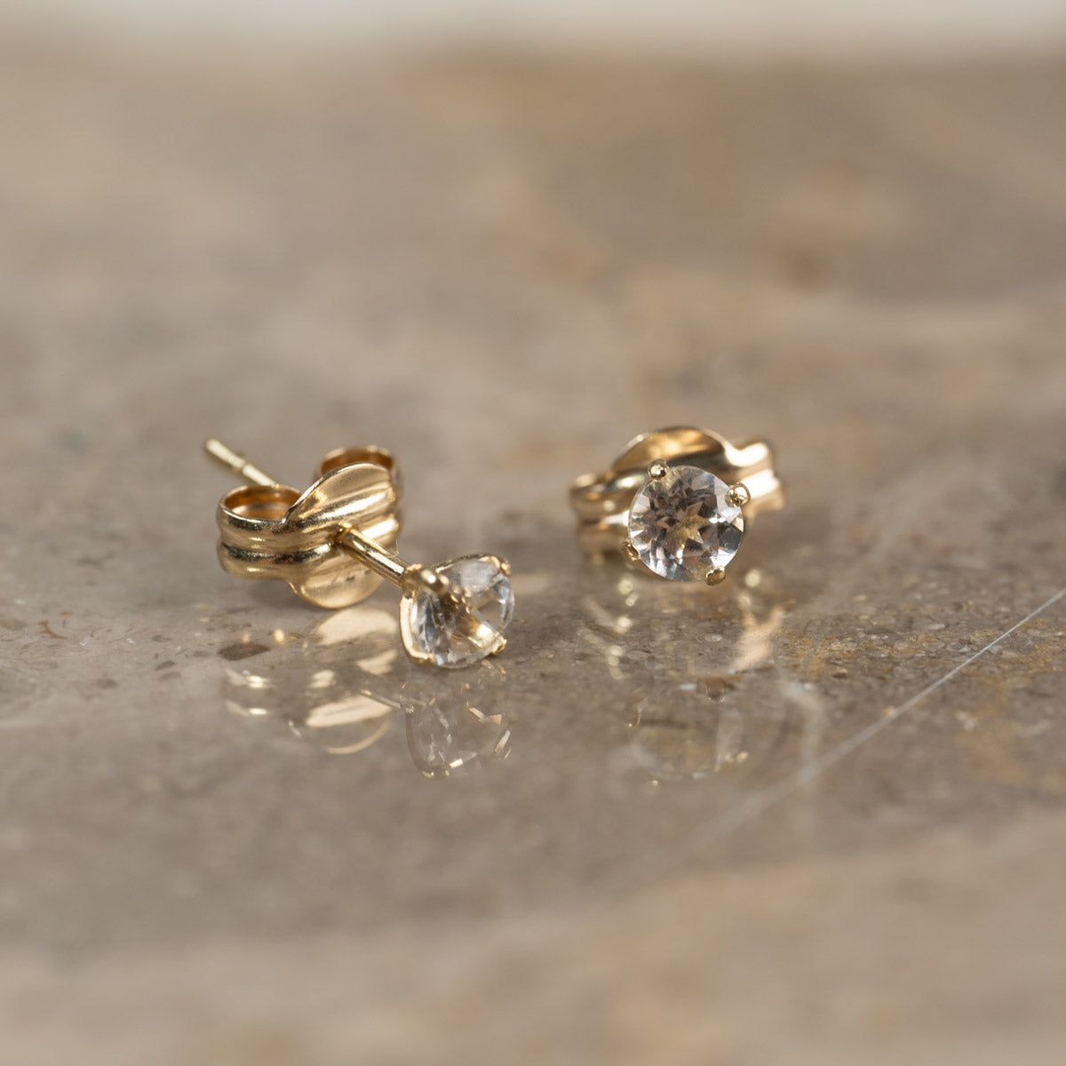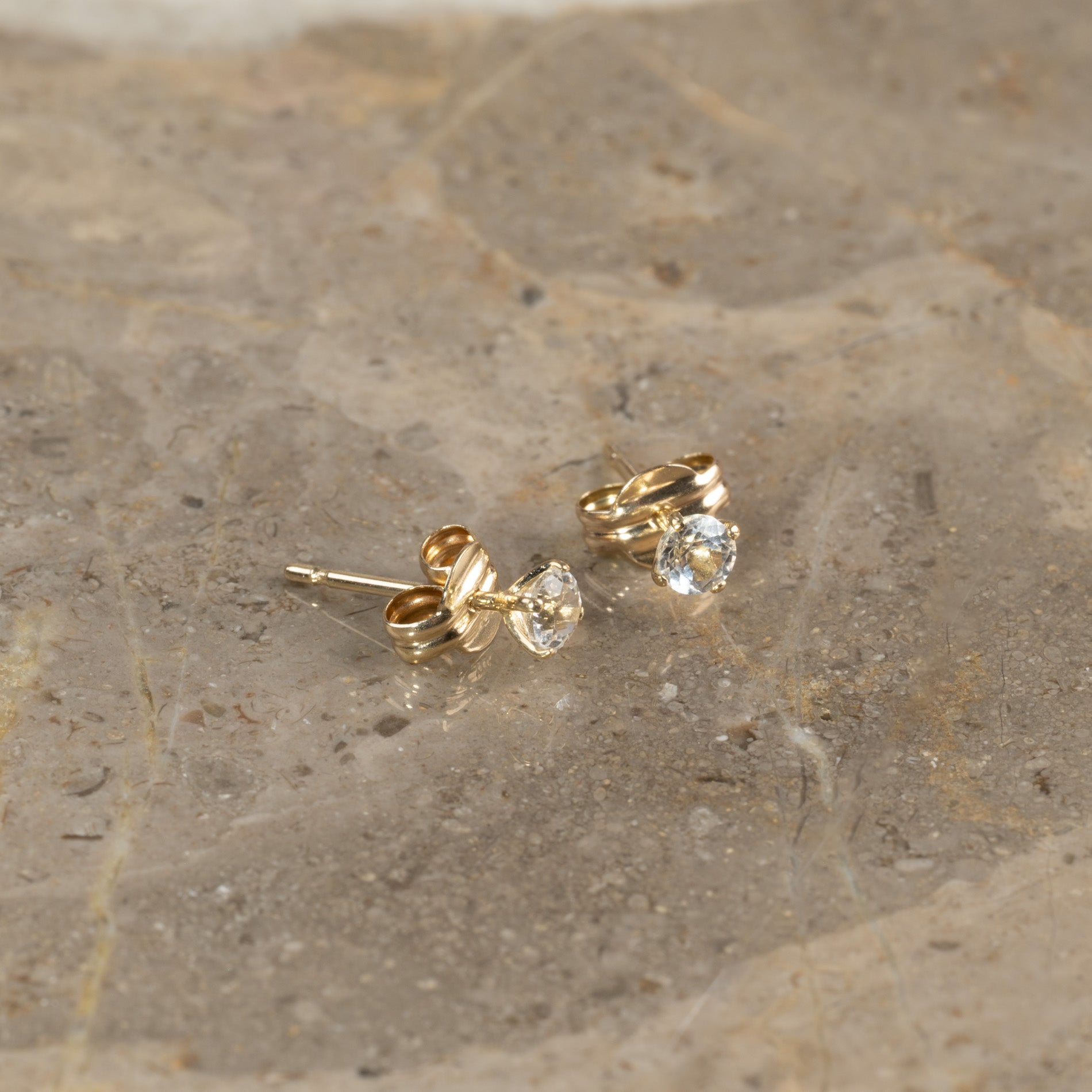 Øredobber i massivt gull med hvit topas