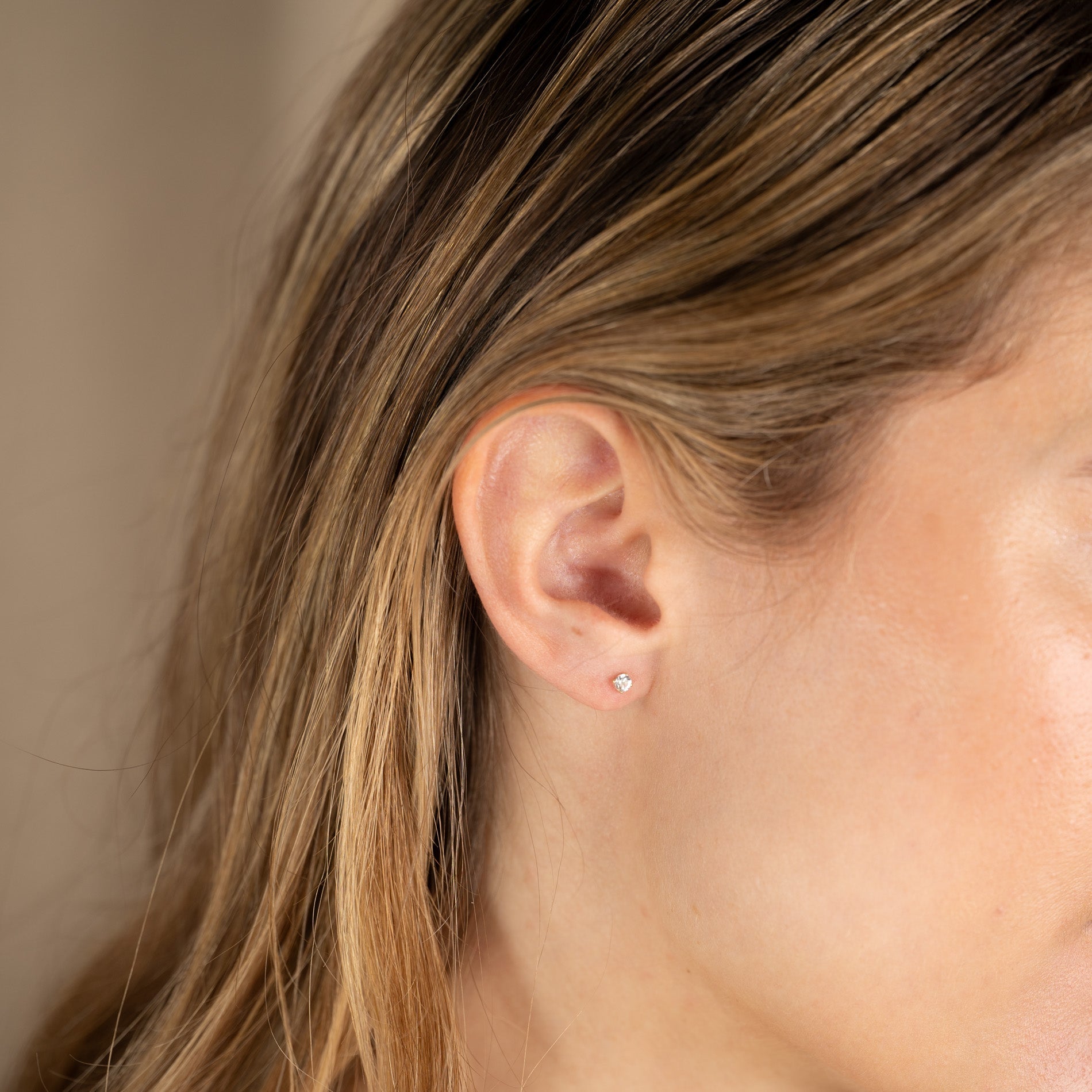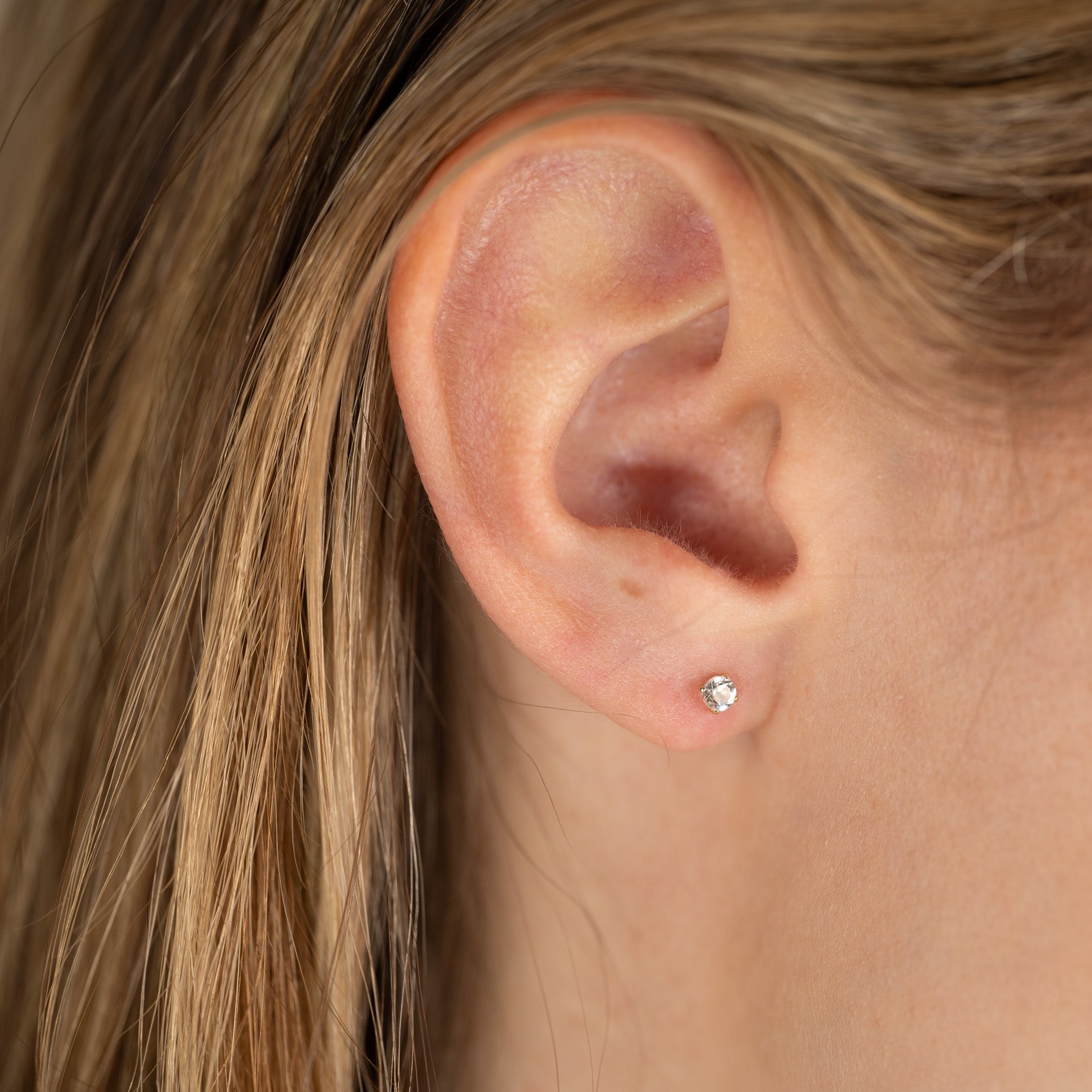 SOLEY WHITE TOPAZ SOLID GOLD STUD EARRING