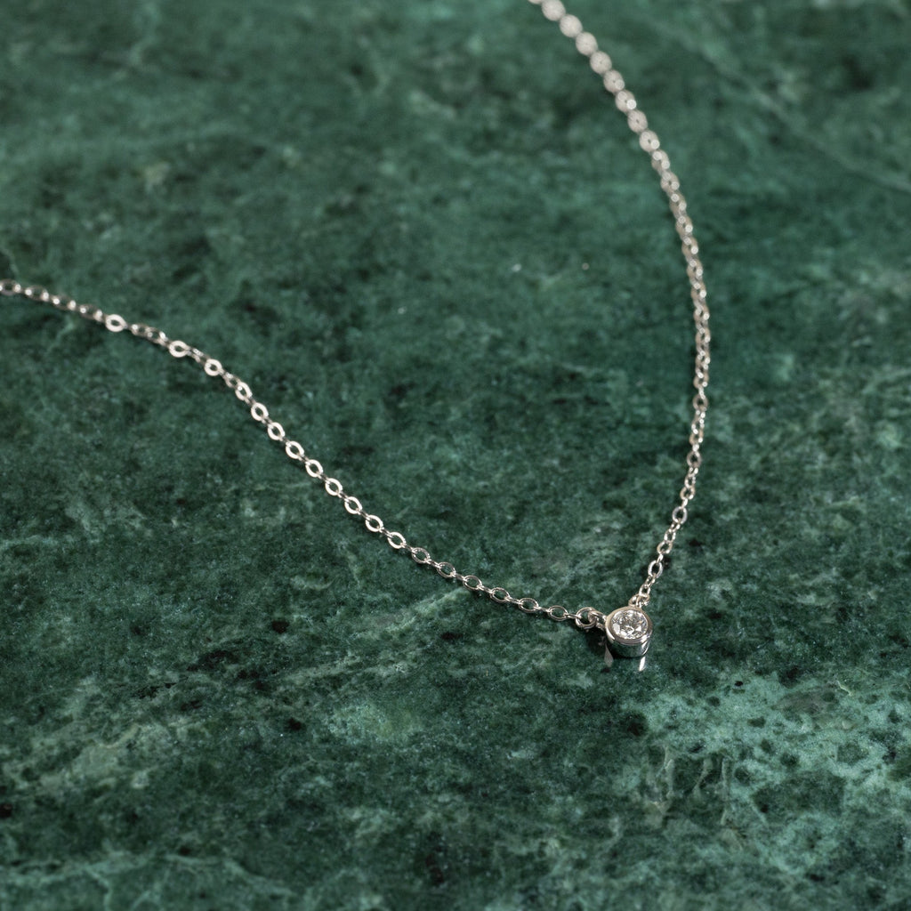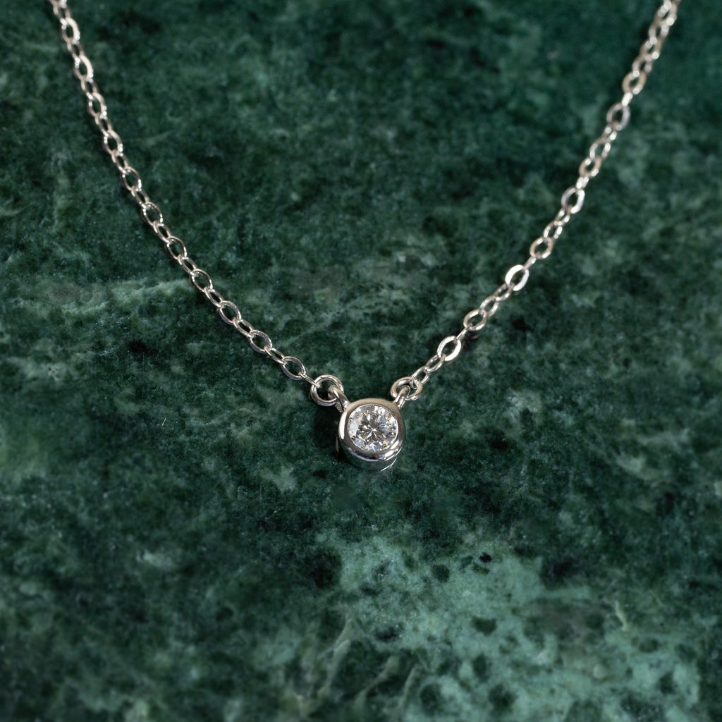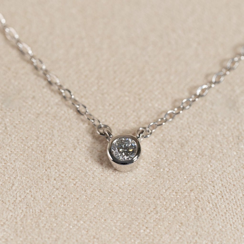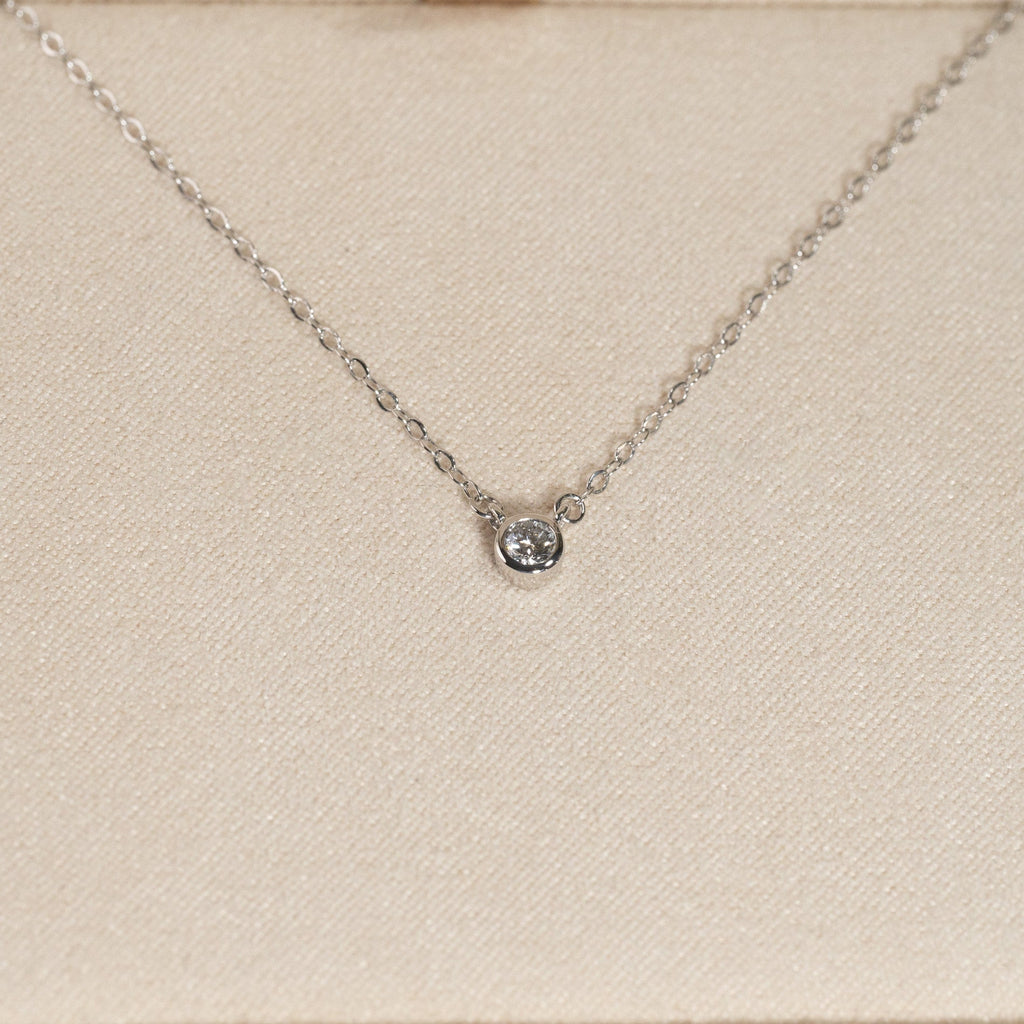 SOLITAIRE BEZEL DIAMOND NECKLACE - 0.1ct - WG