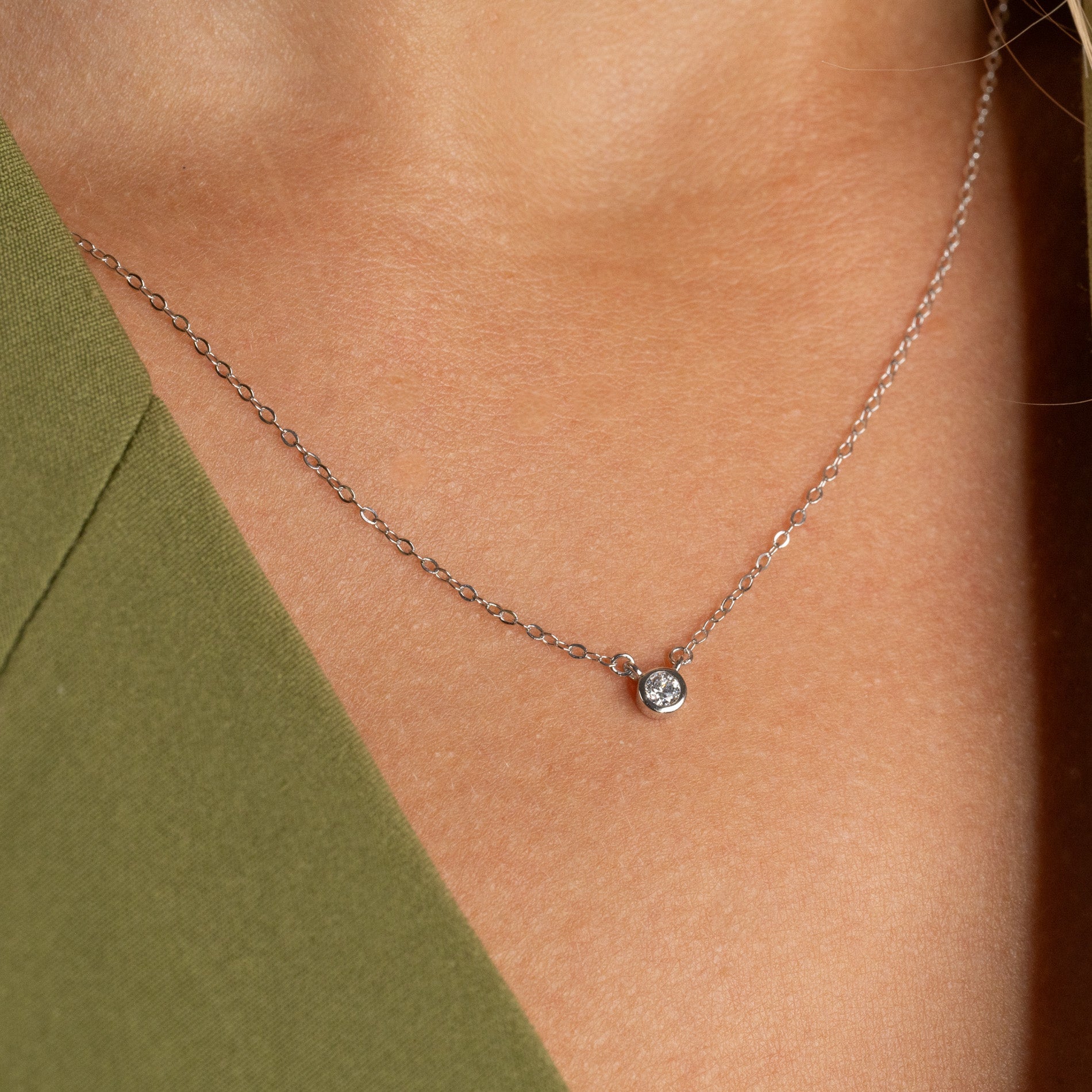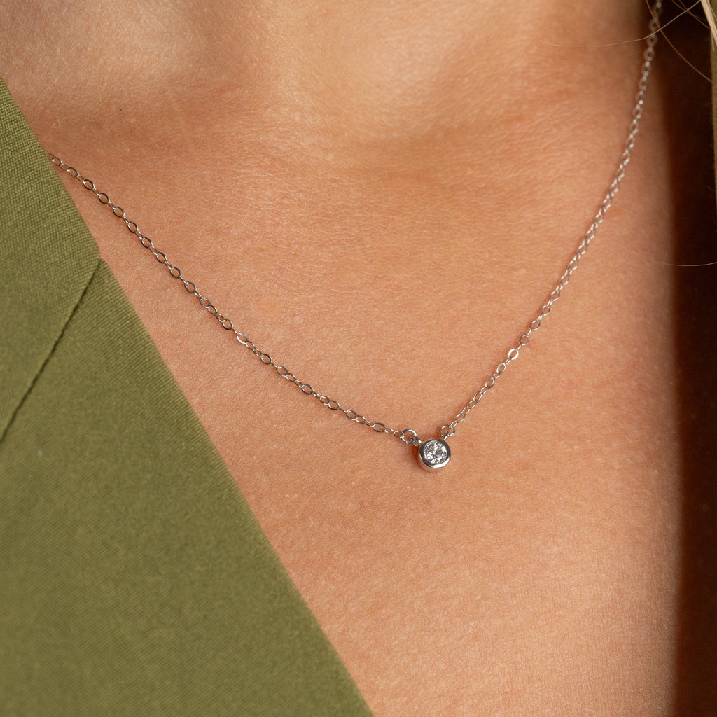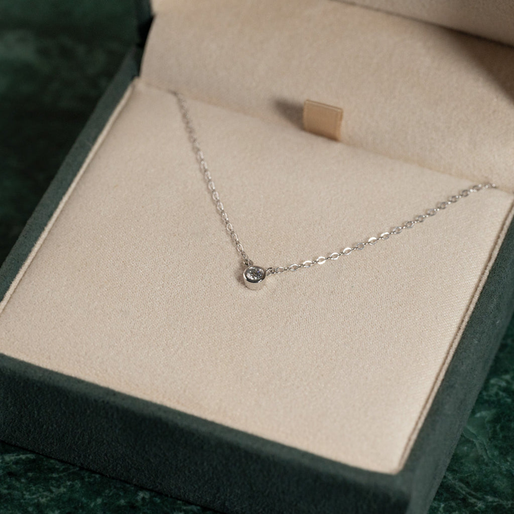 SOLITAIRE BEZEL DIAMOND NECKLACE - 0.1ct - WG