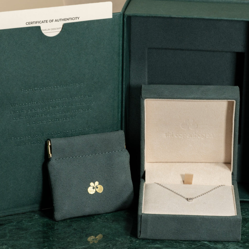Smykket leveres i vår eksklusive Diamond Collection-boks med en flott smykkeeske, sertifikat og pouch. Boksen er også perfekt hvis smykket skal gis som gave.