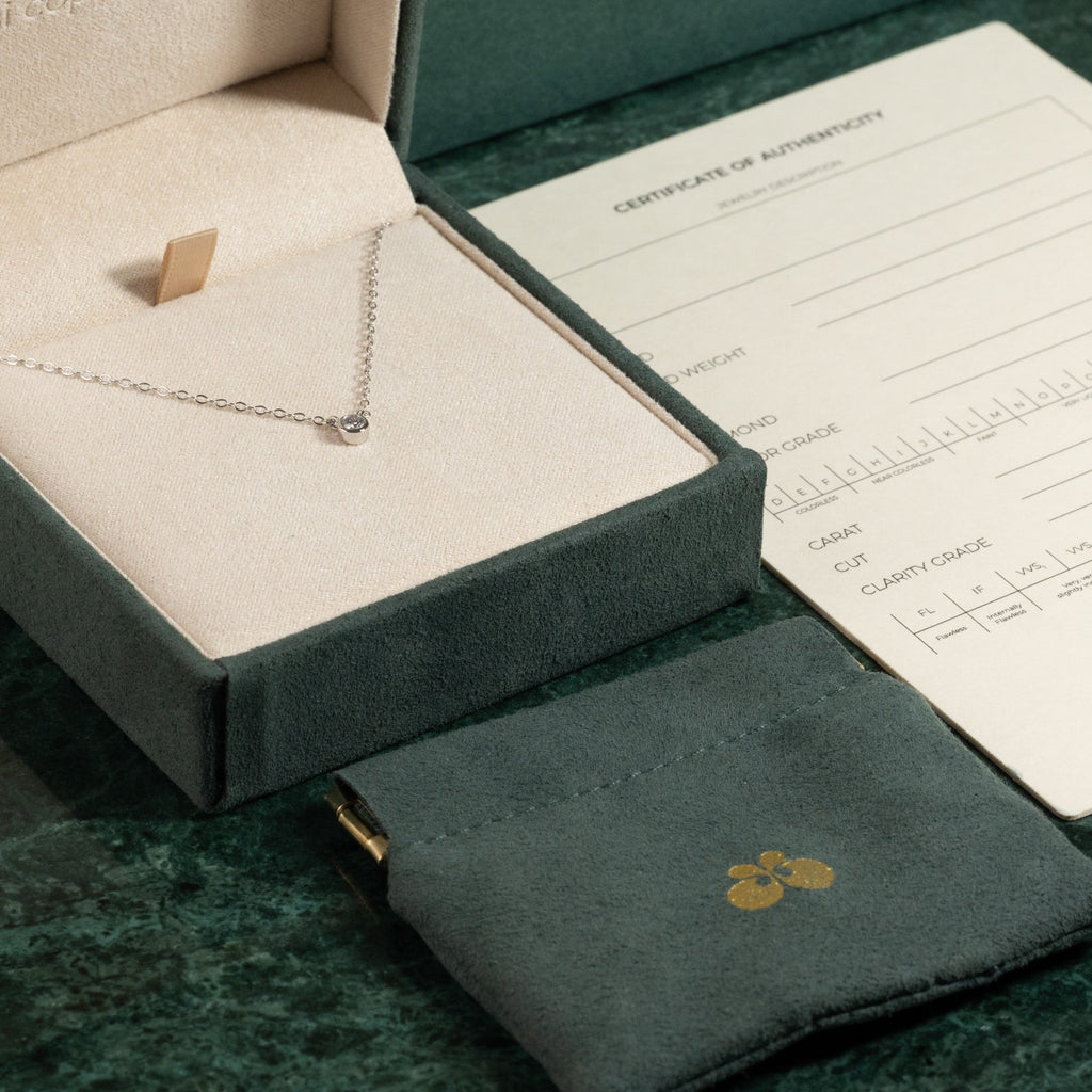 Alle diamantsmykkene våre fra vår Diamantkolleksjon kommer i vår eksklusive innpakning