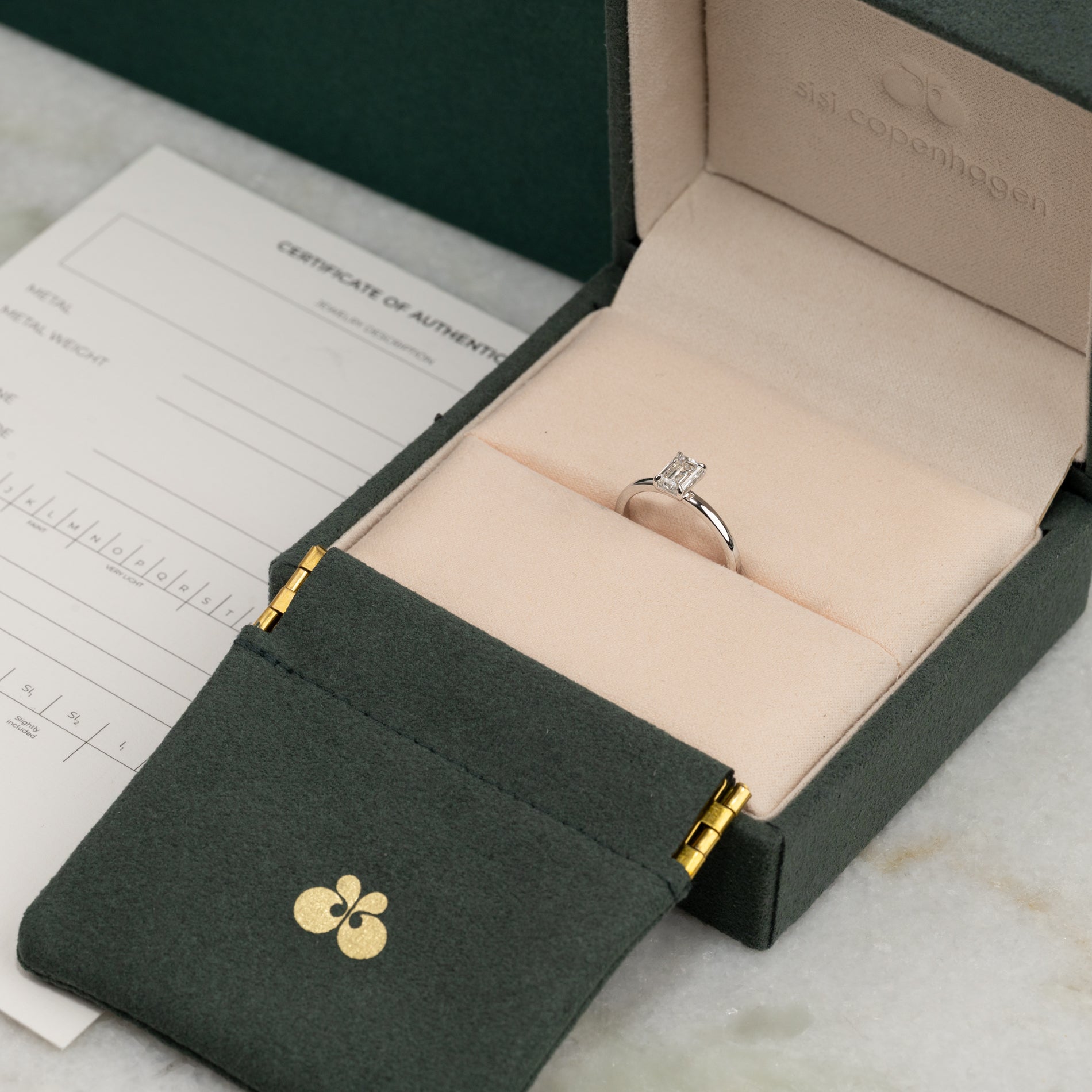 Ringen leveres i vår eksklusive Diamond Collection-boks med smykkeeske, sertifikat og pouch. Boksen er perfekt dersom smykket skal gis i gave.