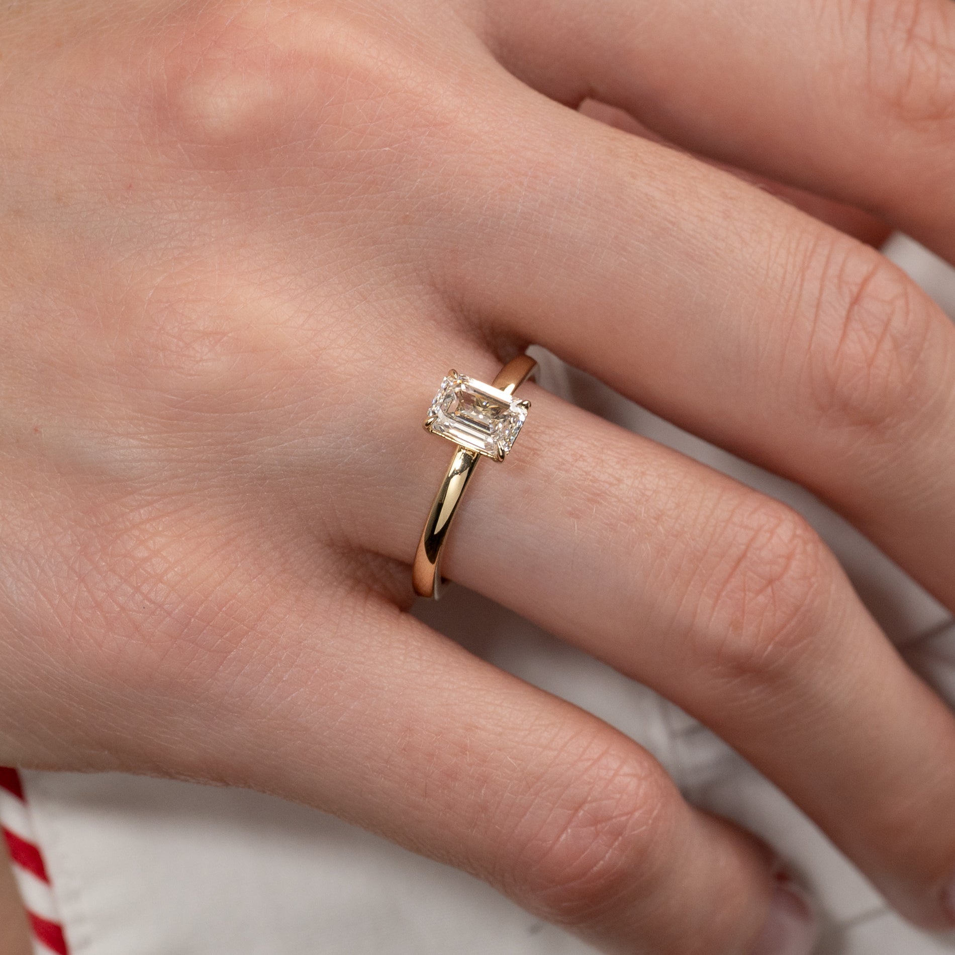 SOLITAIRE EMERALD-CUT LAB-DIAMOND RING - 1.0ct - YG