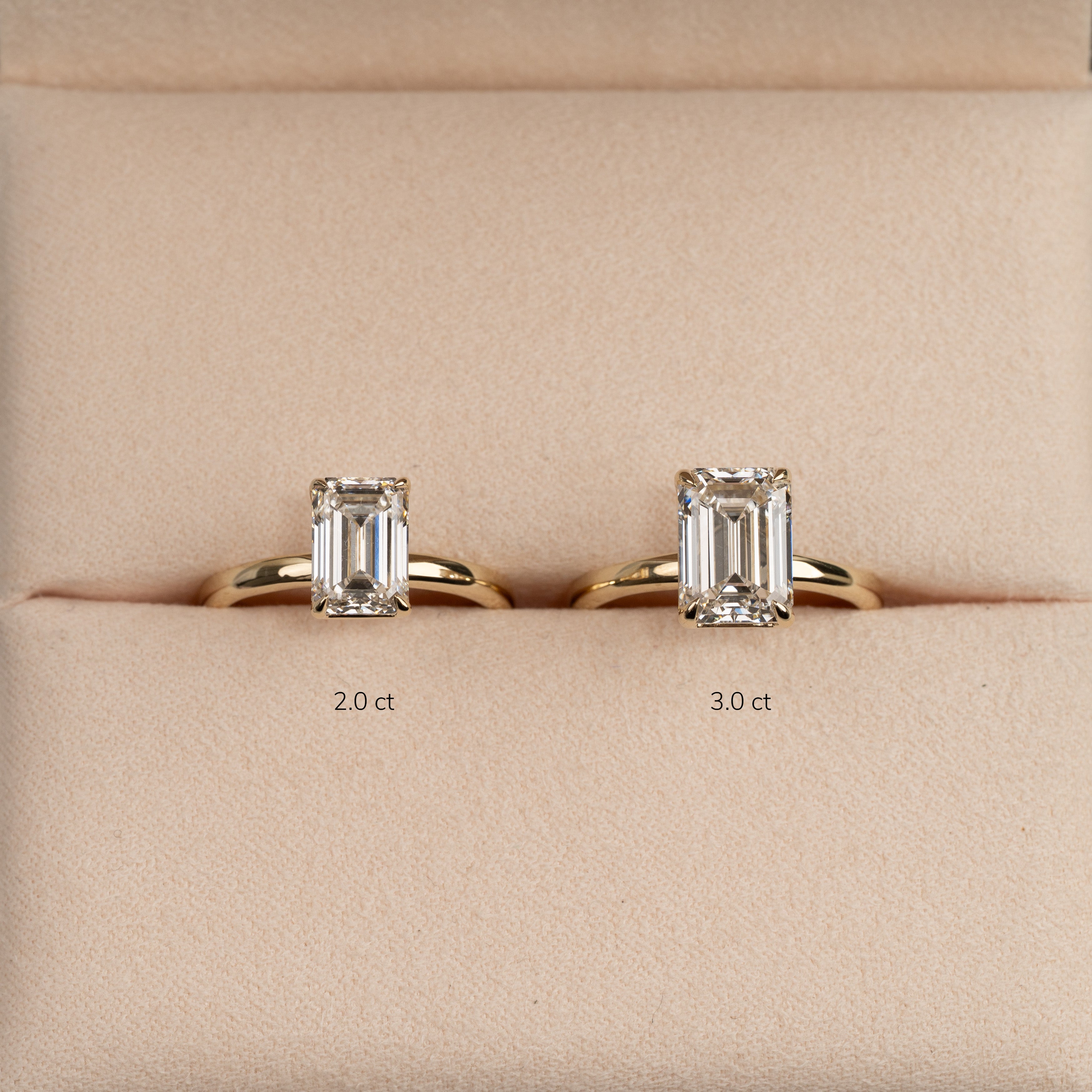 Solitærring med 2,0 ct emeraldslipt laboratoriedyrket diamant i 14 kt gull