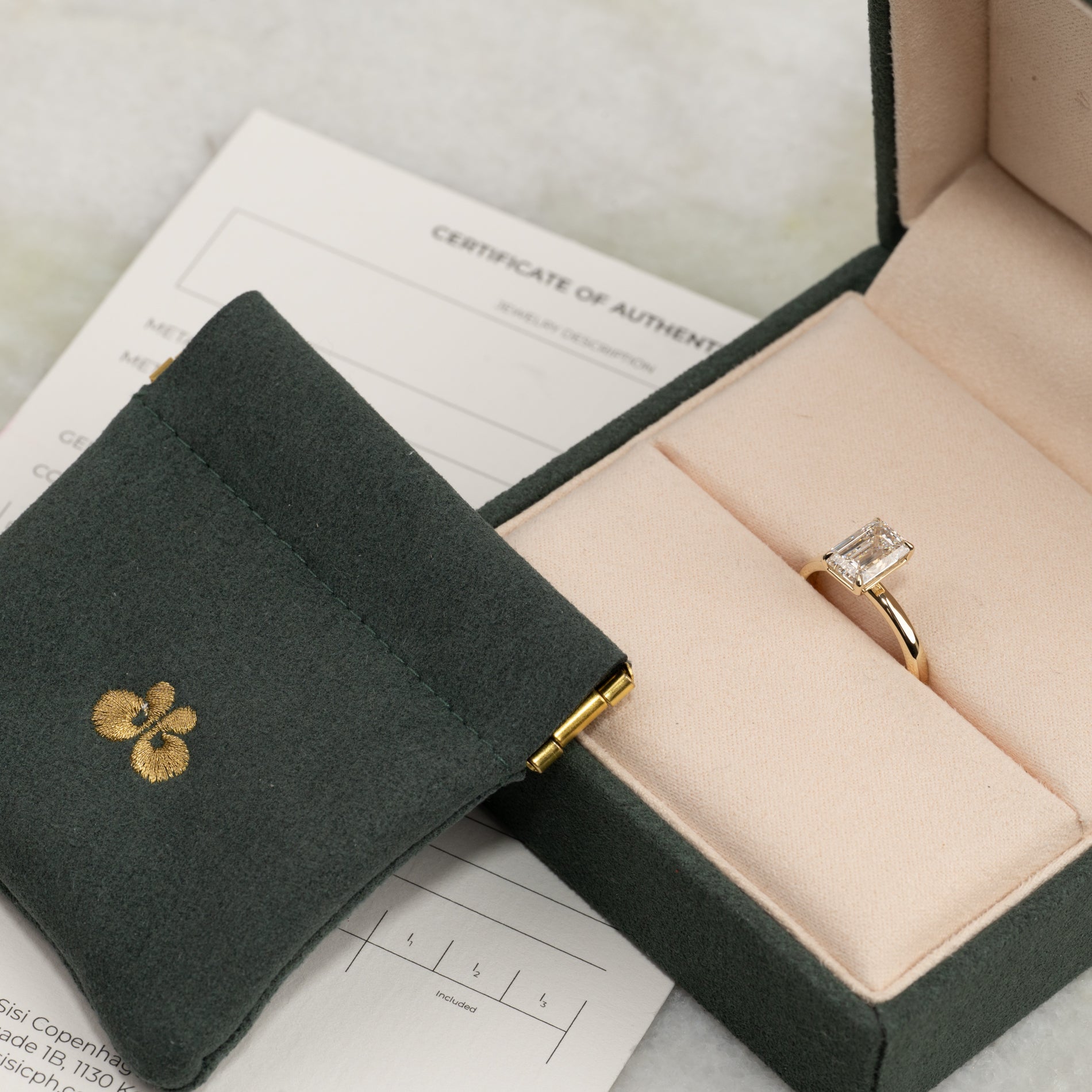 Sertifikatet inneholder all relevant og spesifikk informasjon om smykket, inkludert de 4 C'ene.