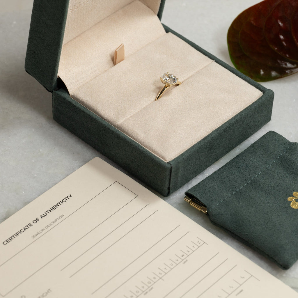 Sertifikatet inneholder all relevant og spesifikk informasjon om smykket, inkludert de 4 C'ene.