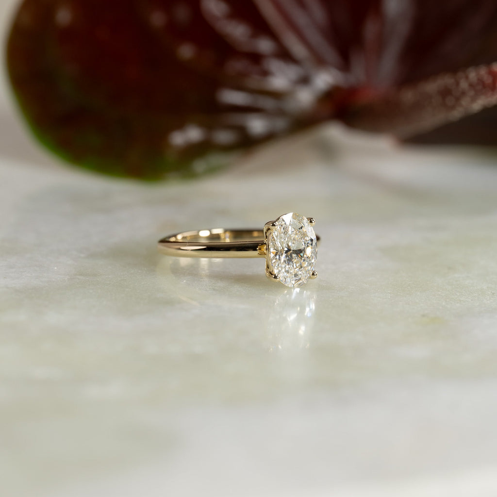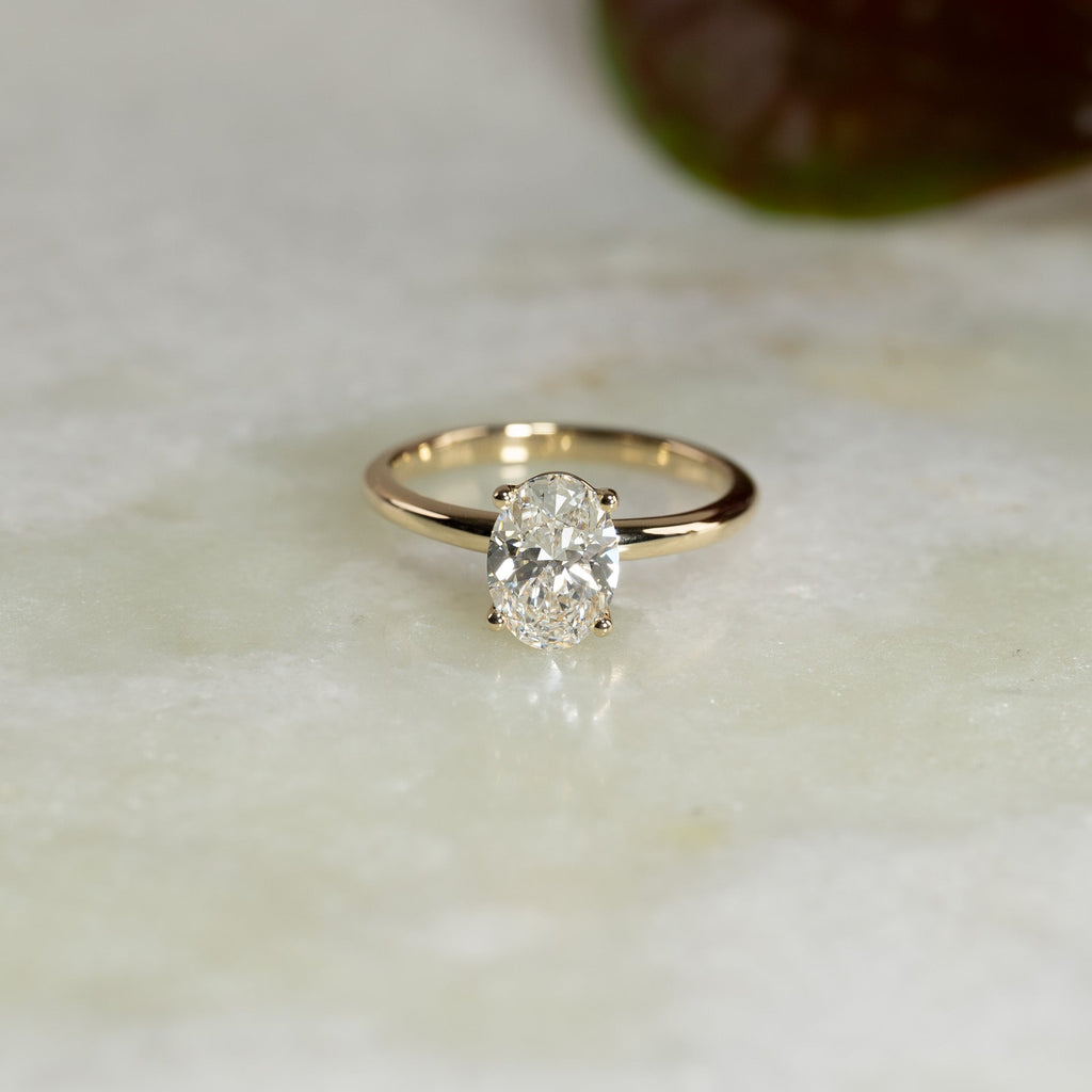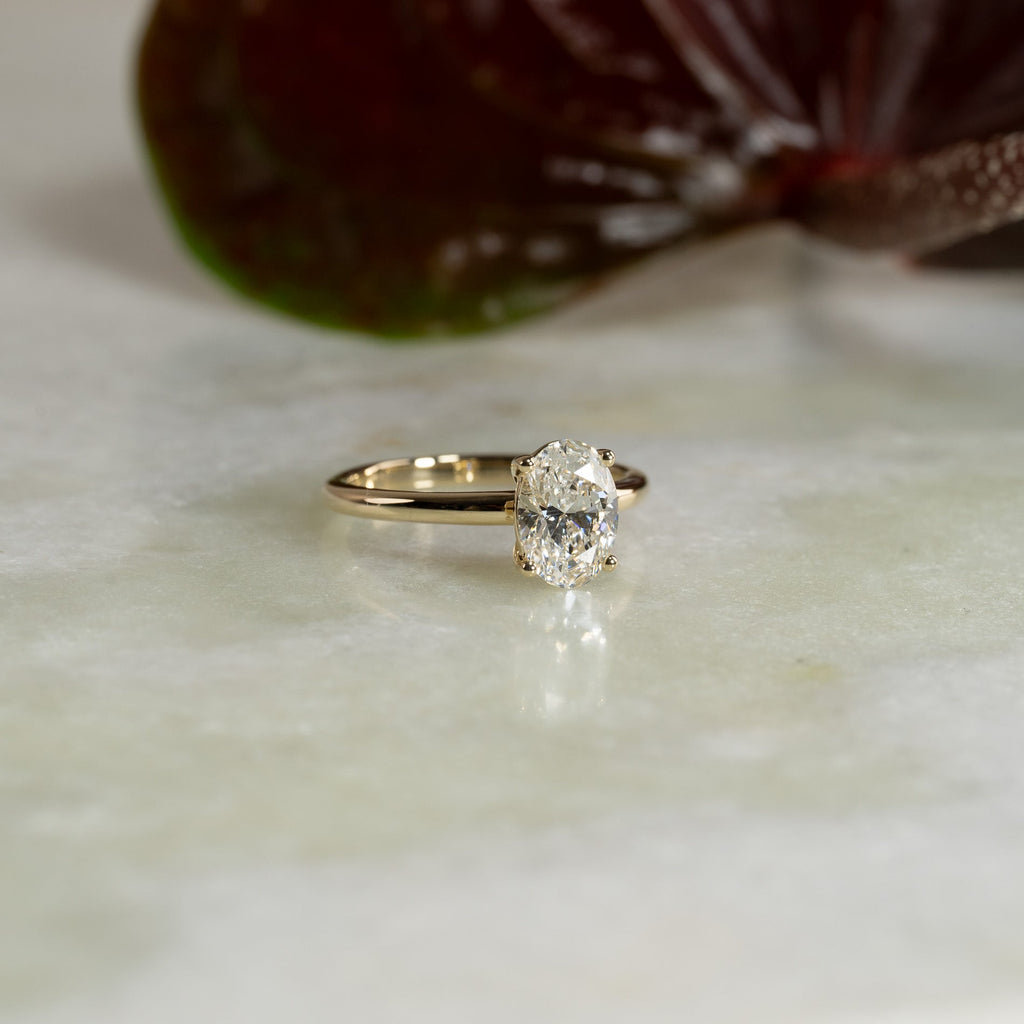 Solitairering med 1,5 ct. ovalslipt lab-grown diamant i 14 kt. gull
