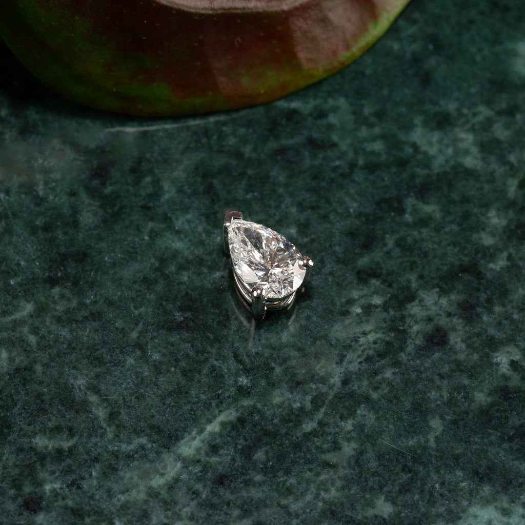 Diamantanheng med 0,65 kt. dråpeformet (pæreslipt) laboratoriedyrket diamant og 14 karat hvitt gull.