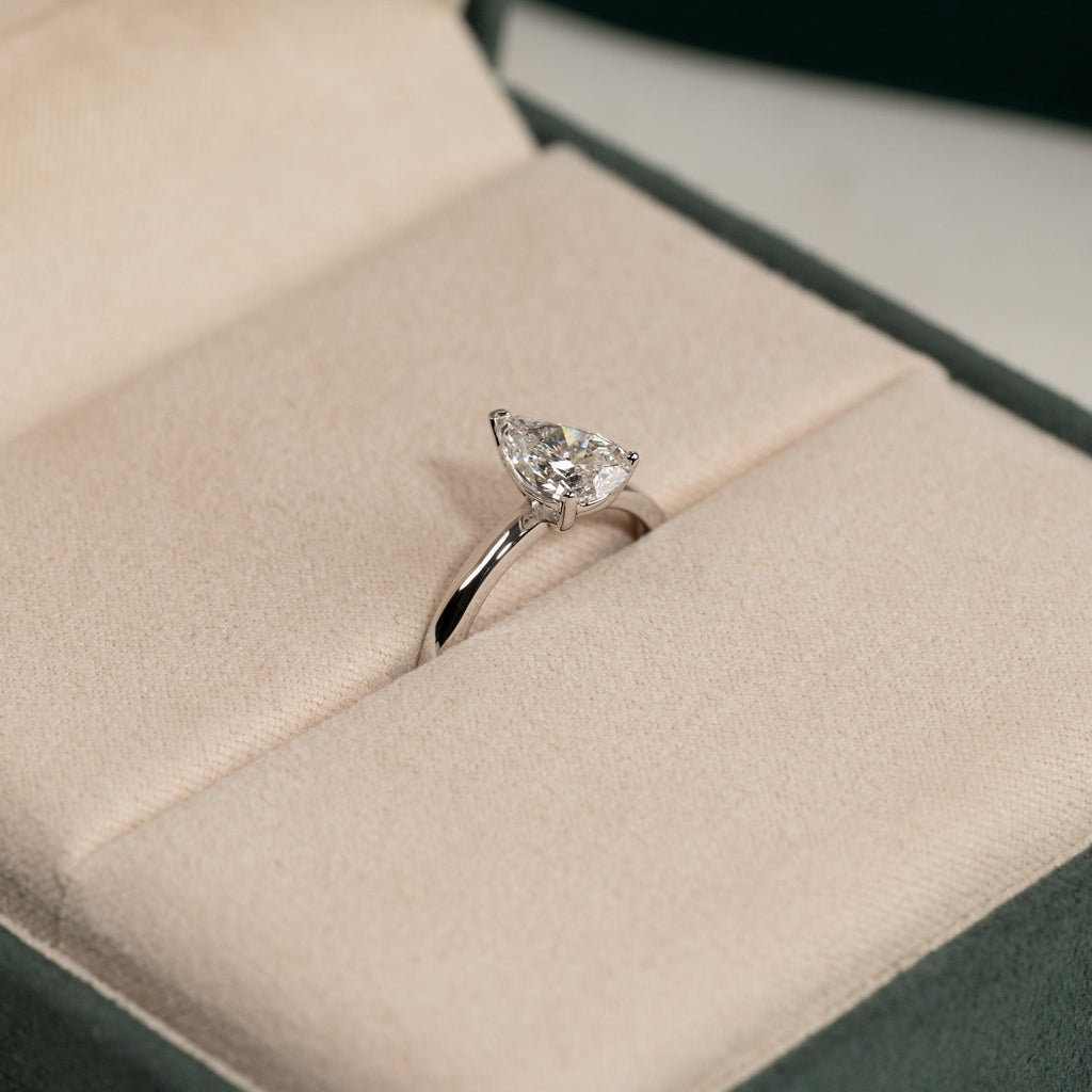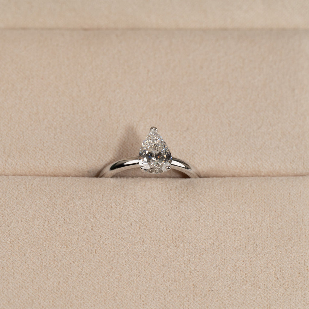 Ring i 14 karat hvitt gull med en 1,2 ct lab-dyrket diamant i dråpeform.