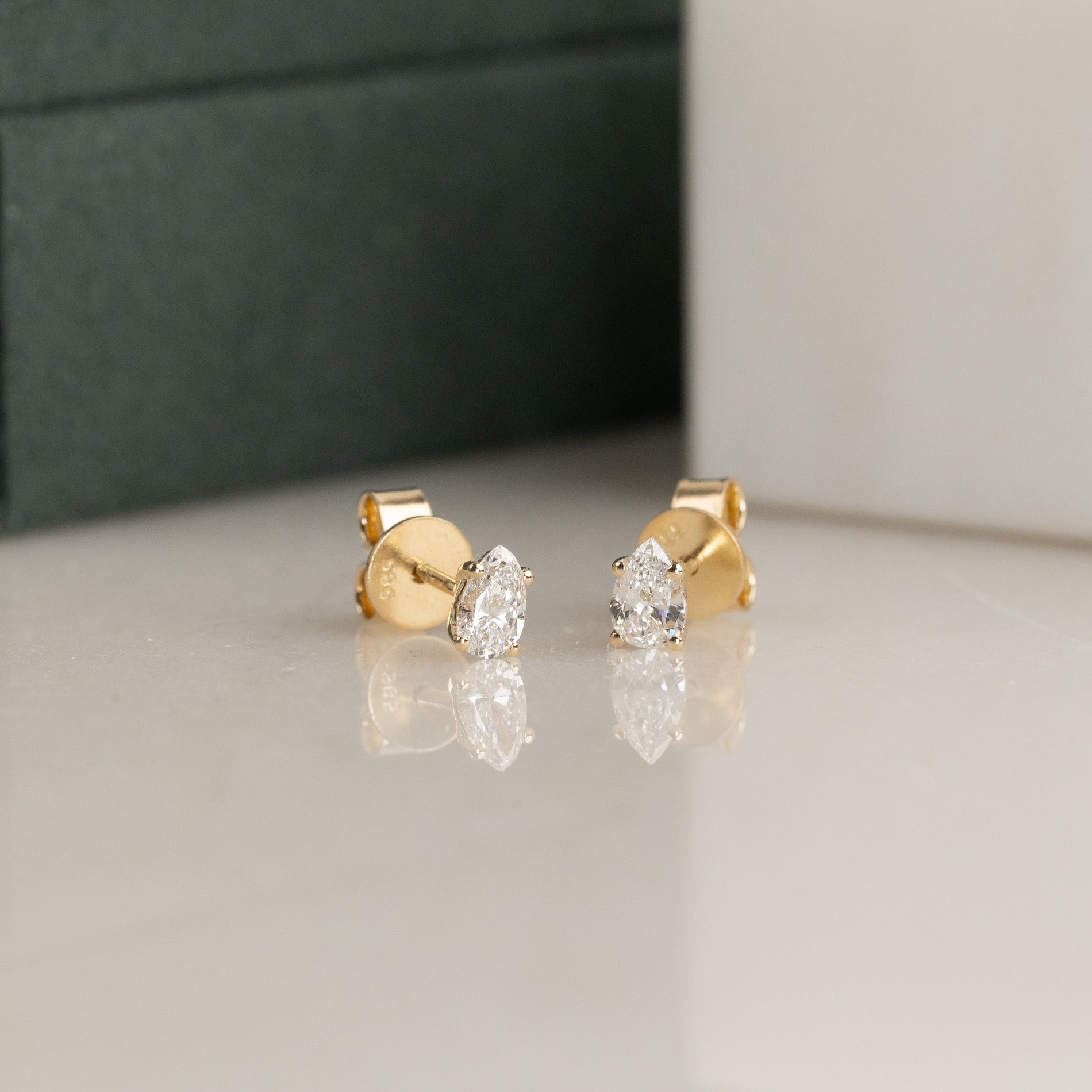 Øredobber med lab-grown diamanter i pear-cut (dråpeform). Den vakre slipingen gir øredobbene et elegant og feminint uttrykk, som gjør dem perfekte til enhver anledning.