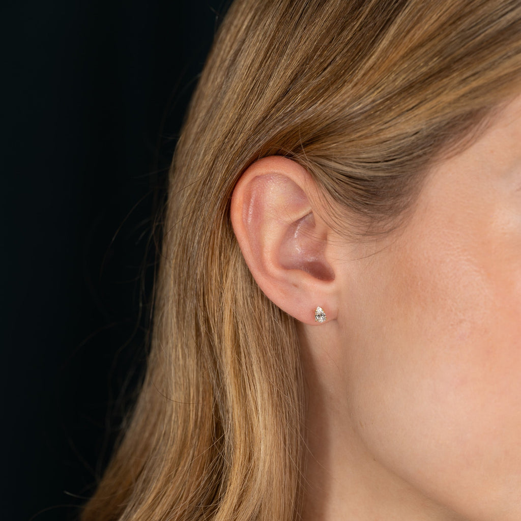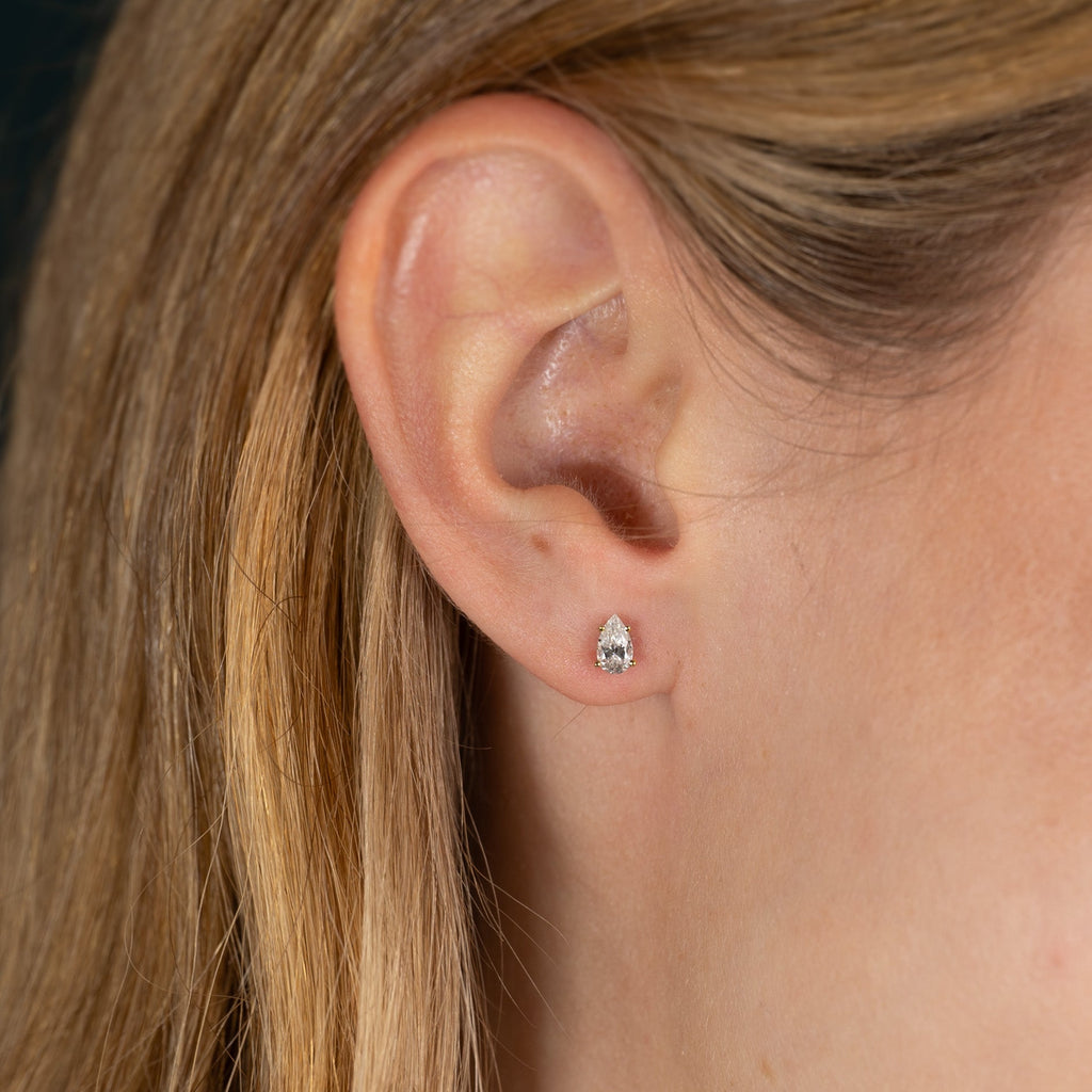 SOLITAIRE PEAR-CUT DIAMOND STUD EARRING - 0.5ct - YG