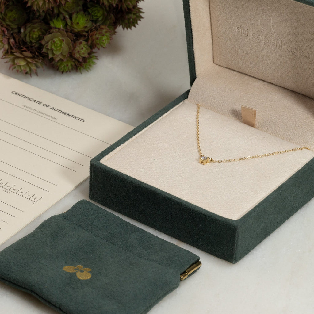Alle diamantsmykkene våre fra vår Diamantkolleksjon kommer i vår eksklusive innpakning
