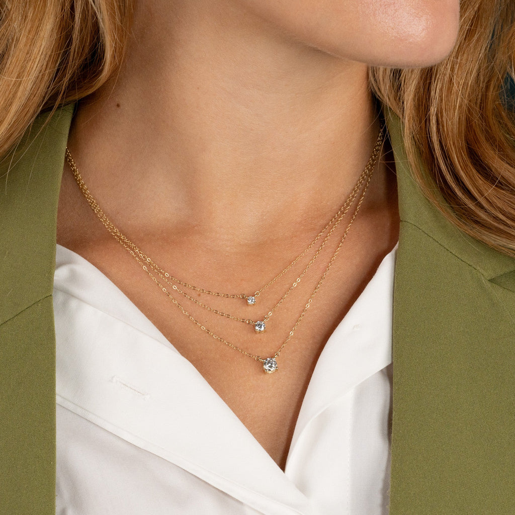 SOLITAIRE PRONG DIAMOND NECKLACE - 0.1ct - YG