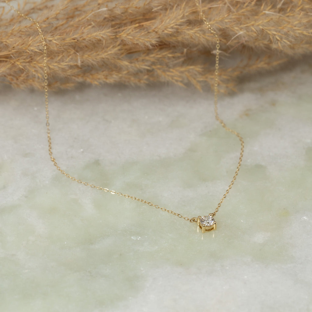 SOLITAIRE PRONG DIAMOND NECKLACE - 0.5ct - YG