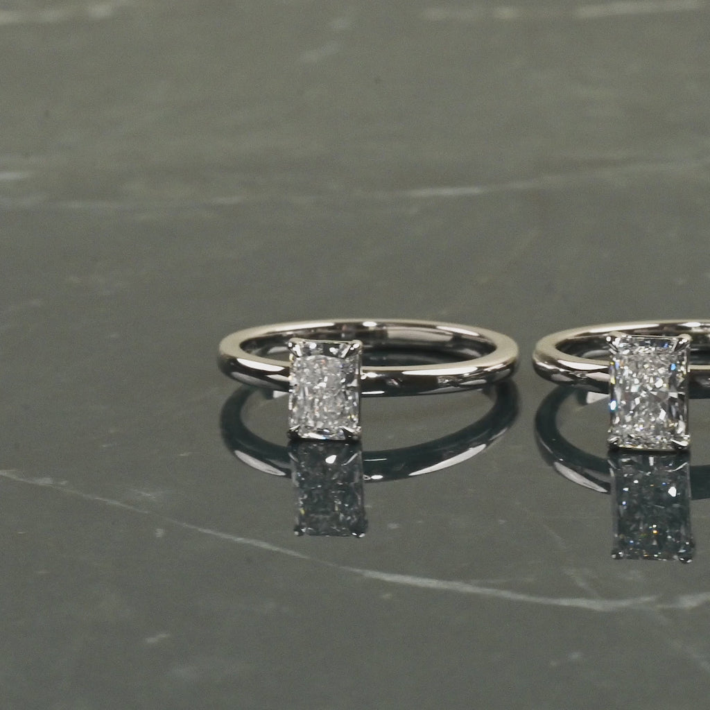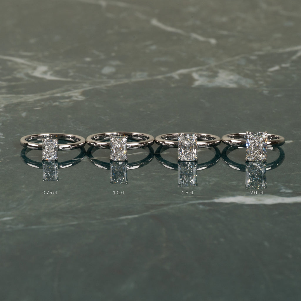 Ring i 14 karat hvitt gull med en 1,0 ct. radiant-slipt lab-grown diamant. Steinen er vakker innfattet i en lett hevet basket-fatning, som komplimenterer den elegante steinen. Ringen er en perfekt cocktailring, den perfekte gave til en du elsker og holder av, eller som den perfekte forlovelsesring.