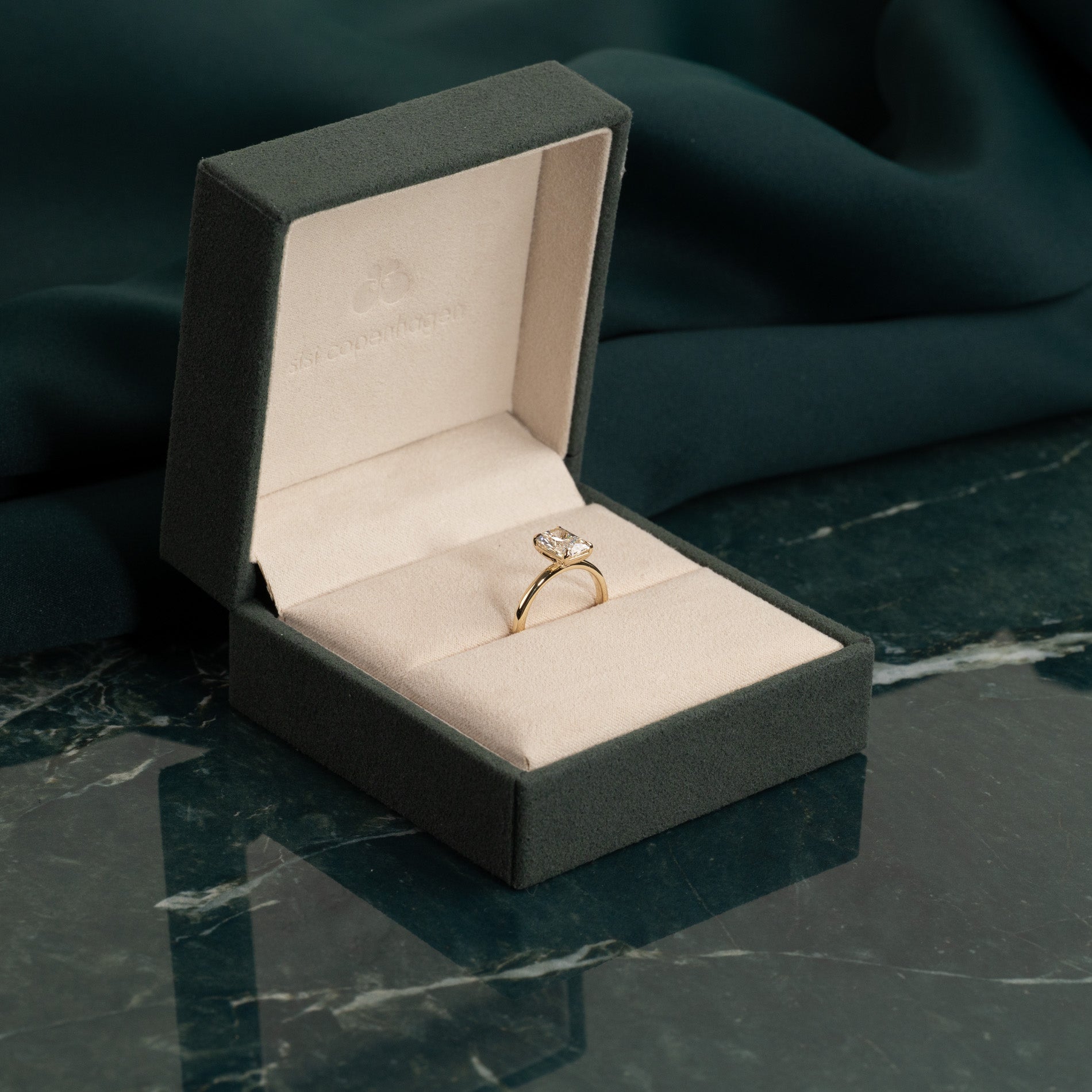 Ringen er laget i 14 karat massivt gull med en lab-grown diamant på 2,0 ct. i fargen E/F (River) og klarheten VVS. Smykket er laget med omtanke; diamantene er produsert med blant annet solenergi, og gullet er 100 % sertifisert resirkulert.
