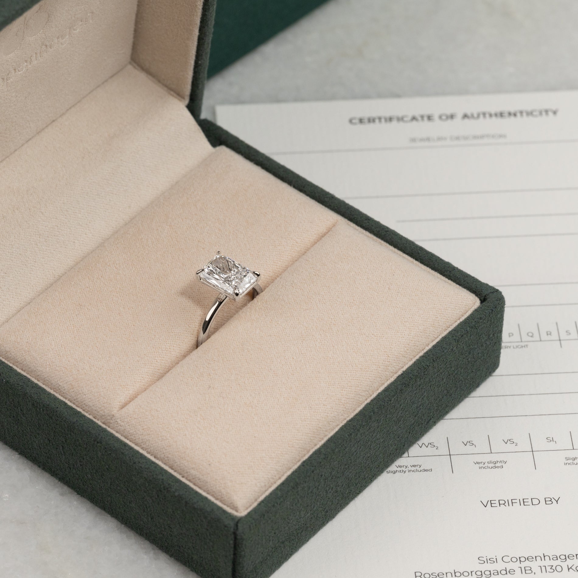 Sertifikatet inneholder all relevant og spesifikk informasjon om smykket, inkludert de 4 C'ene.
