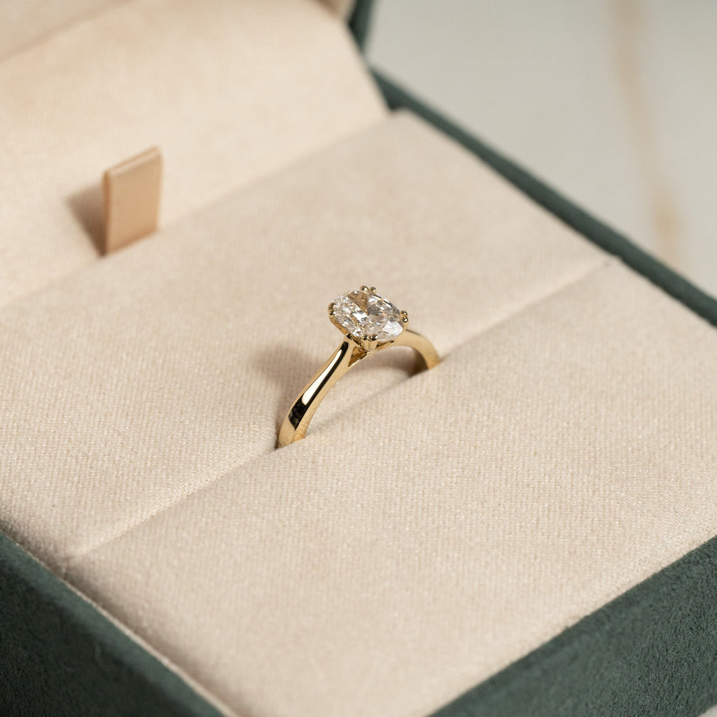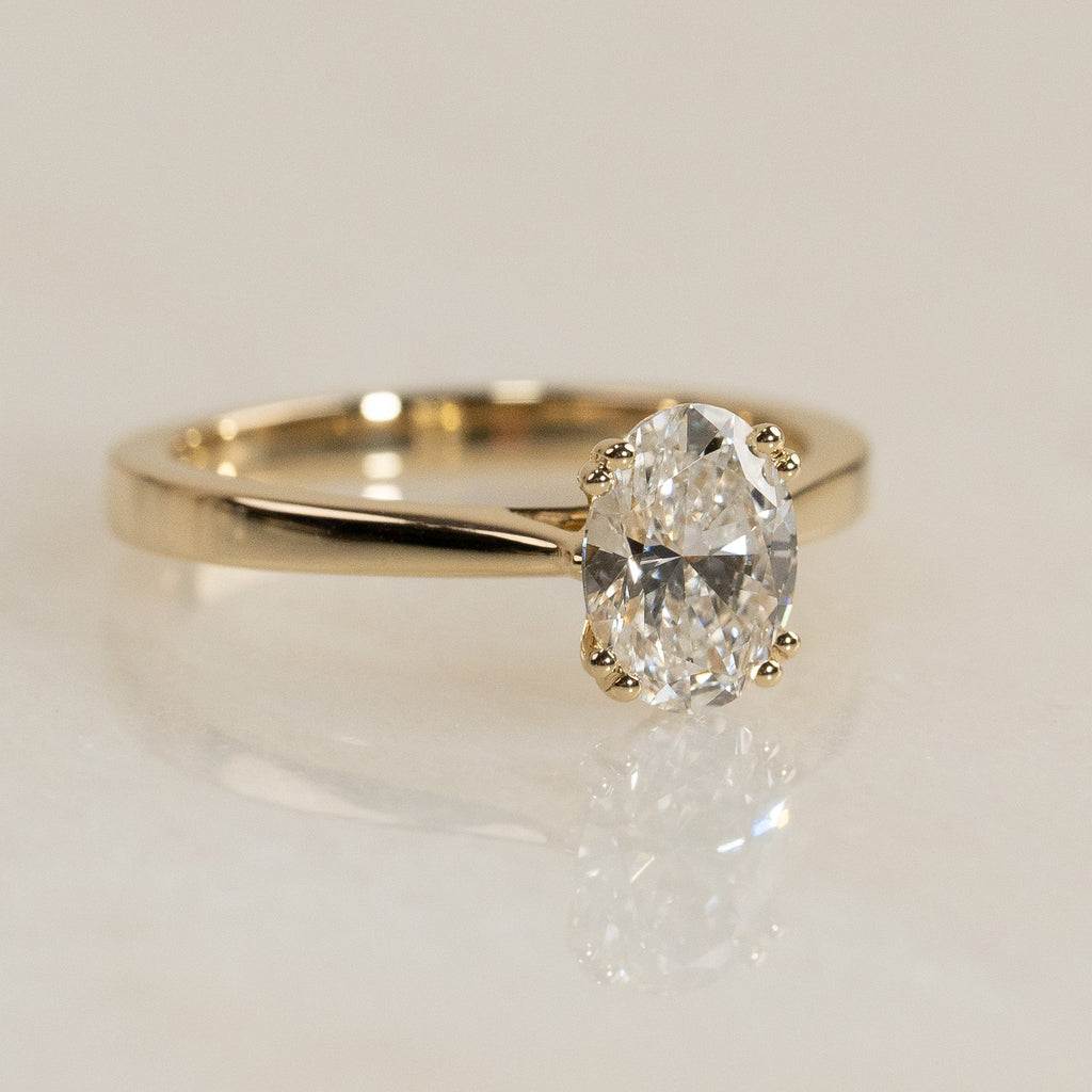 Oval 1,0 ct. lab-grodd diamant i tulipaninnfatning i 14 karat gull