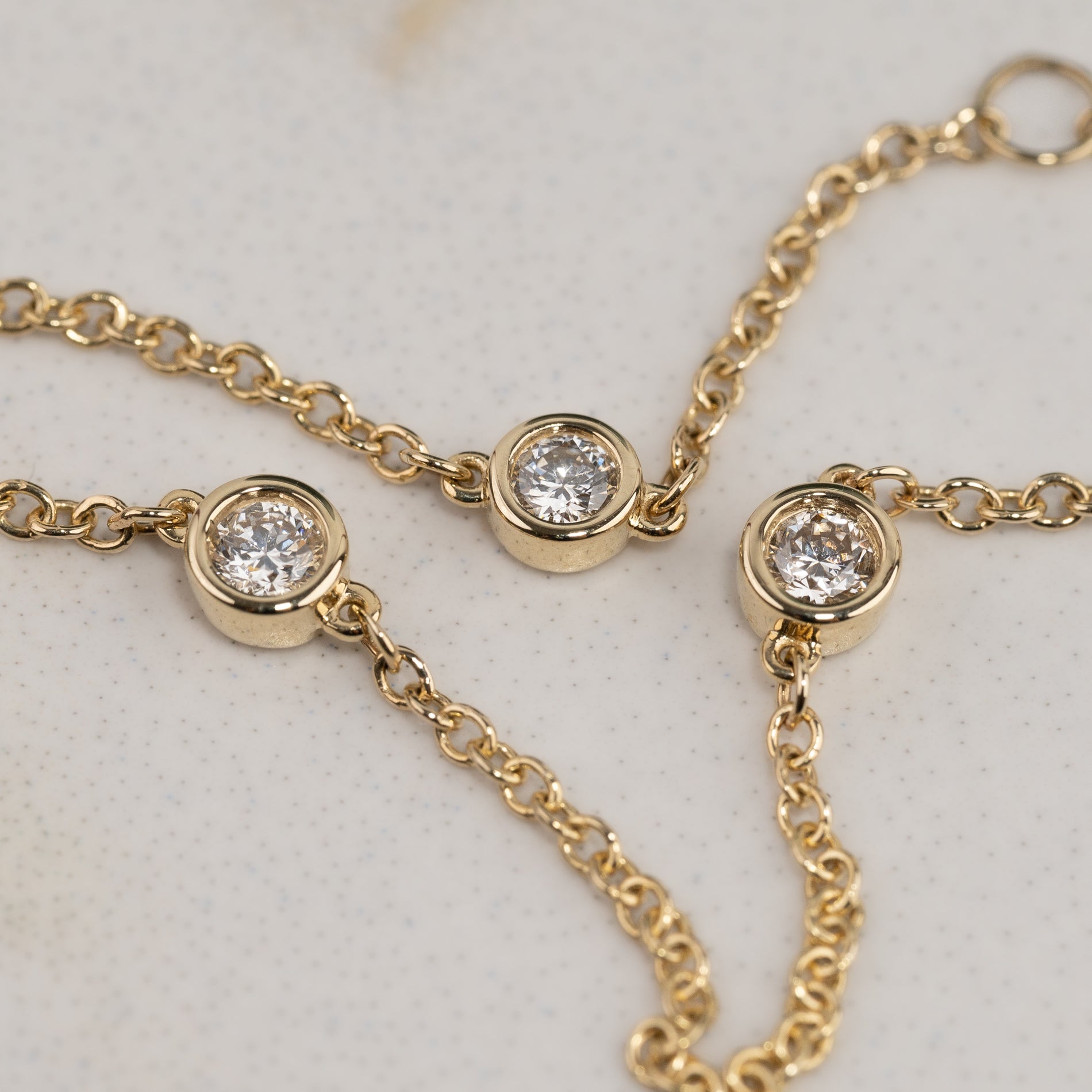 Et klassisk og tidløst armbånd i 14 karat massivt gull med tre integrerte lab-grown diamanter, vakkert innfattet i elegante bezel-fatninger.