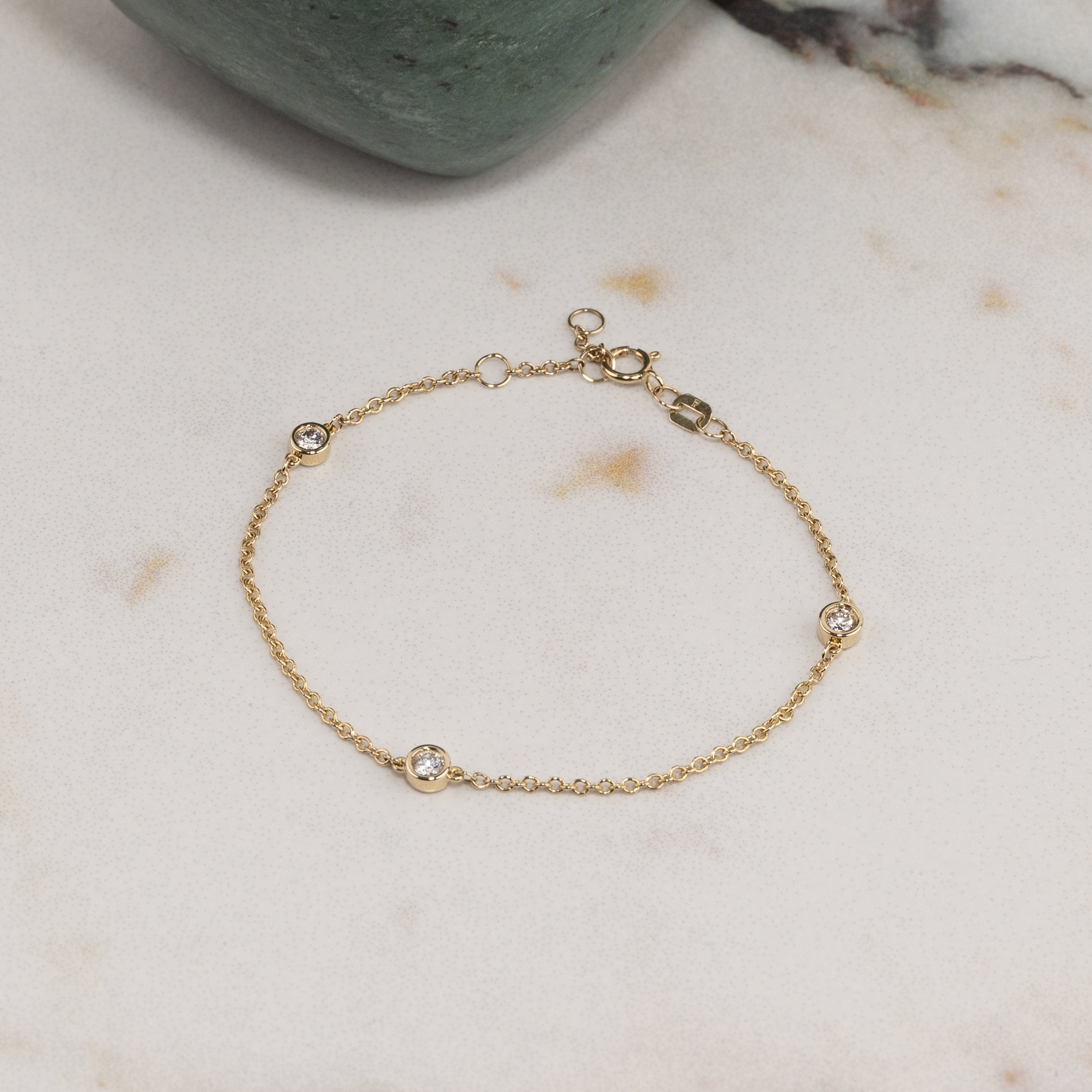THREE STONE BEZEL-SET DIAMOND BRACELET - 0.30ct - YG