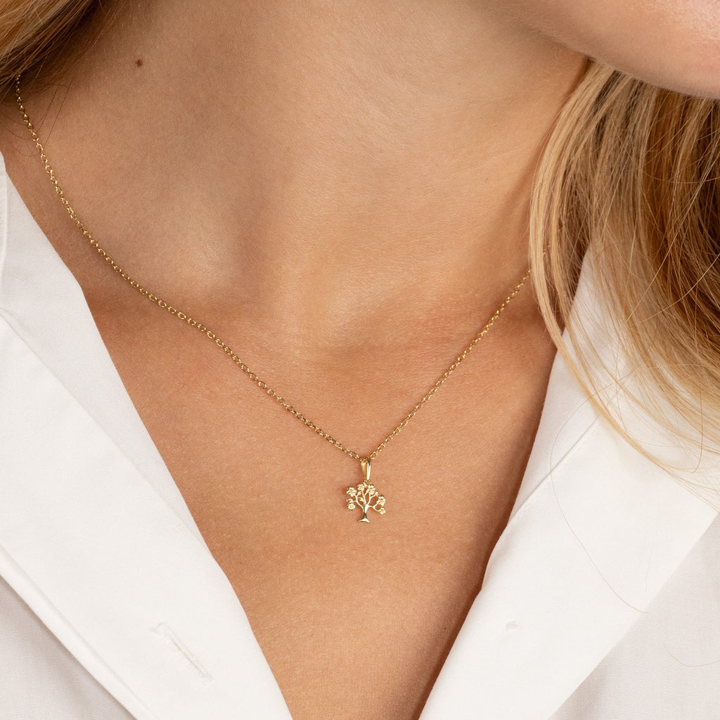 Anhenget er laget av 100% resirkulert 9 karat massivt gull i form av ´Livets tre´.