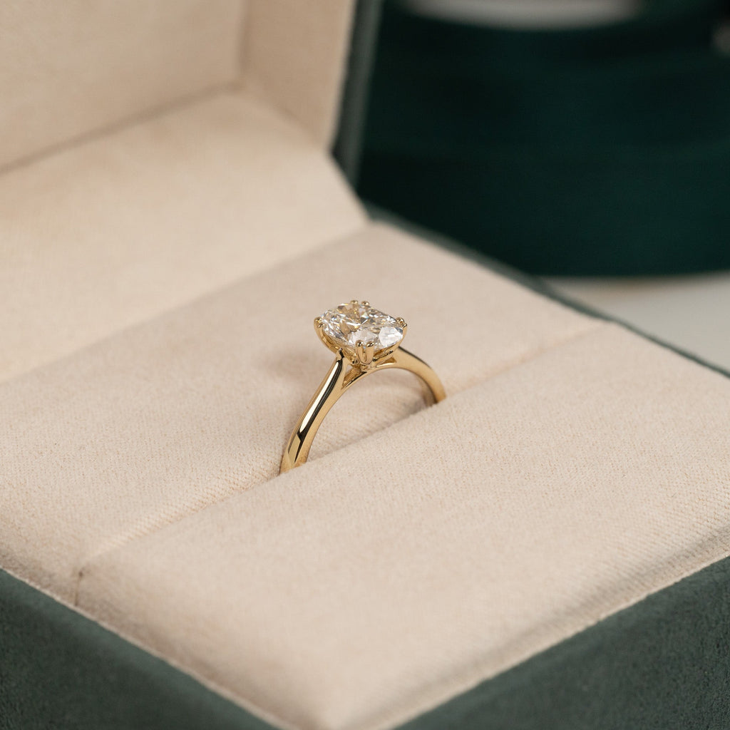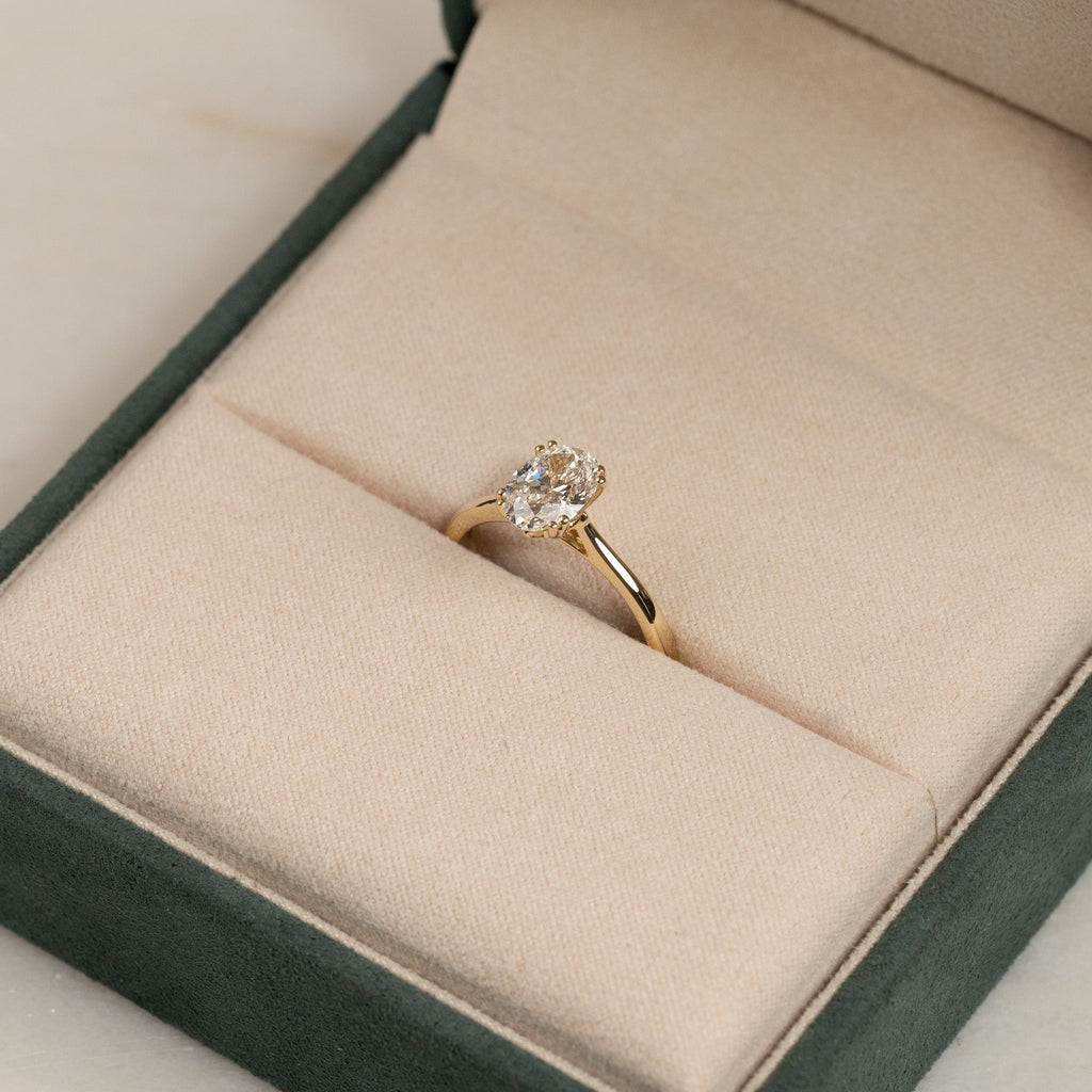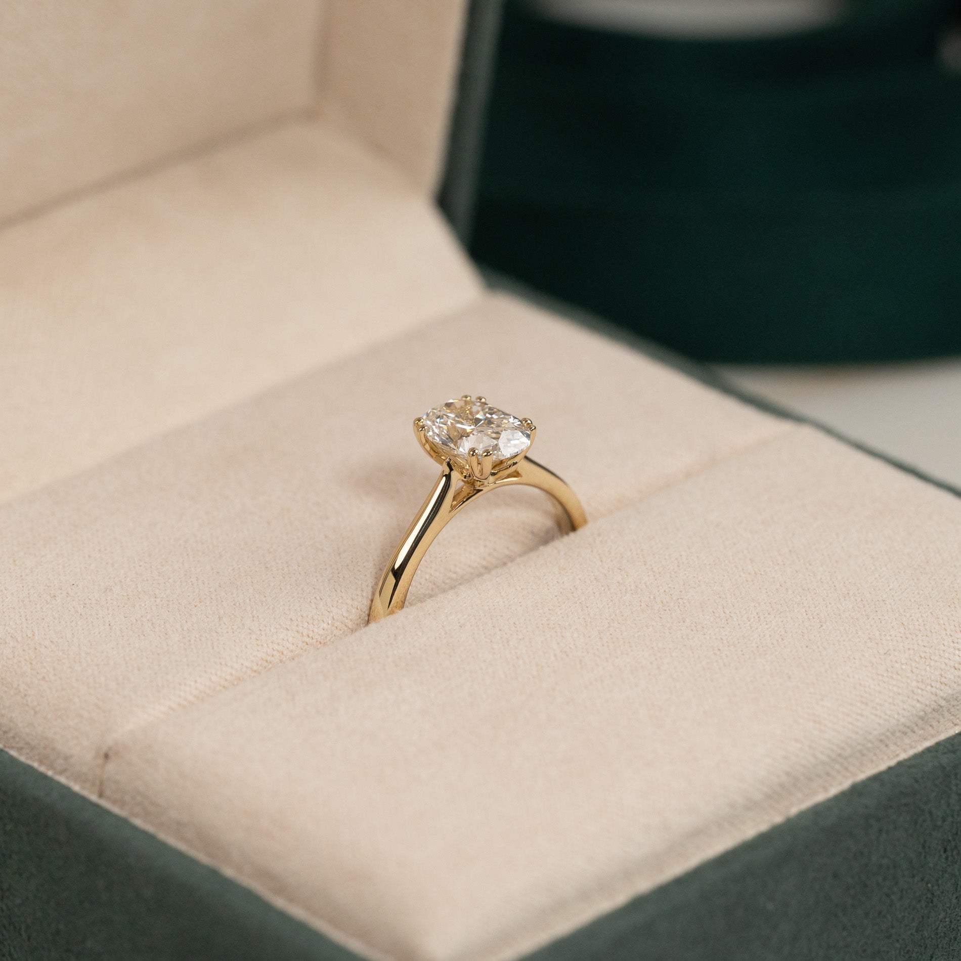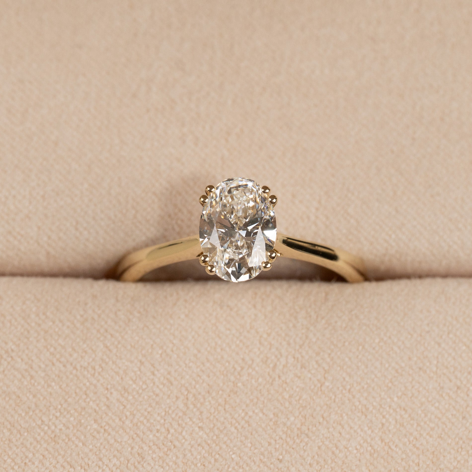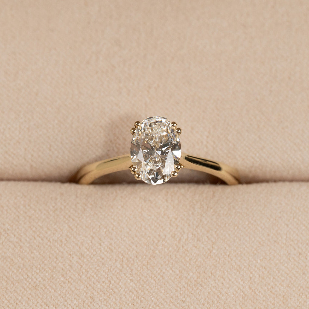 Oval 1,5 ct. lab-grodd diamant i tulipaninnfatning i 14 karat gull