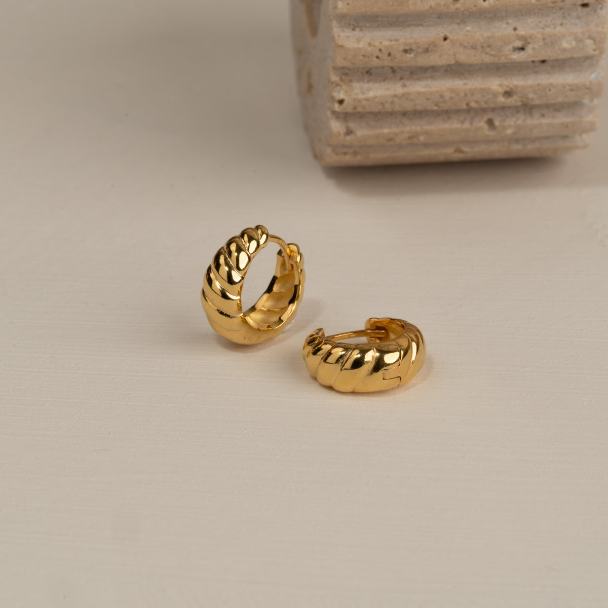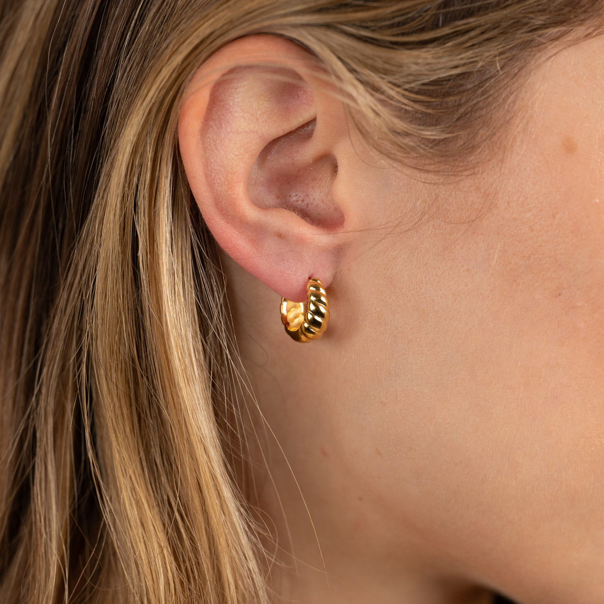 Disse øreringene er laget i 100% resirkulert 18 karat forgylt 925 sterlingsølv. De er designet med en vridd detalj som gir creolene et klassisk og tidløst design. Øreringene måler 15mm i diameter.