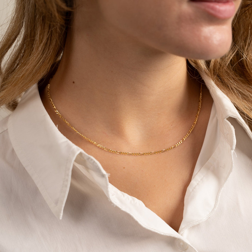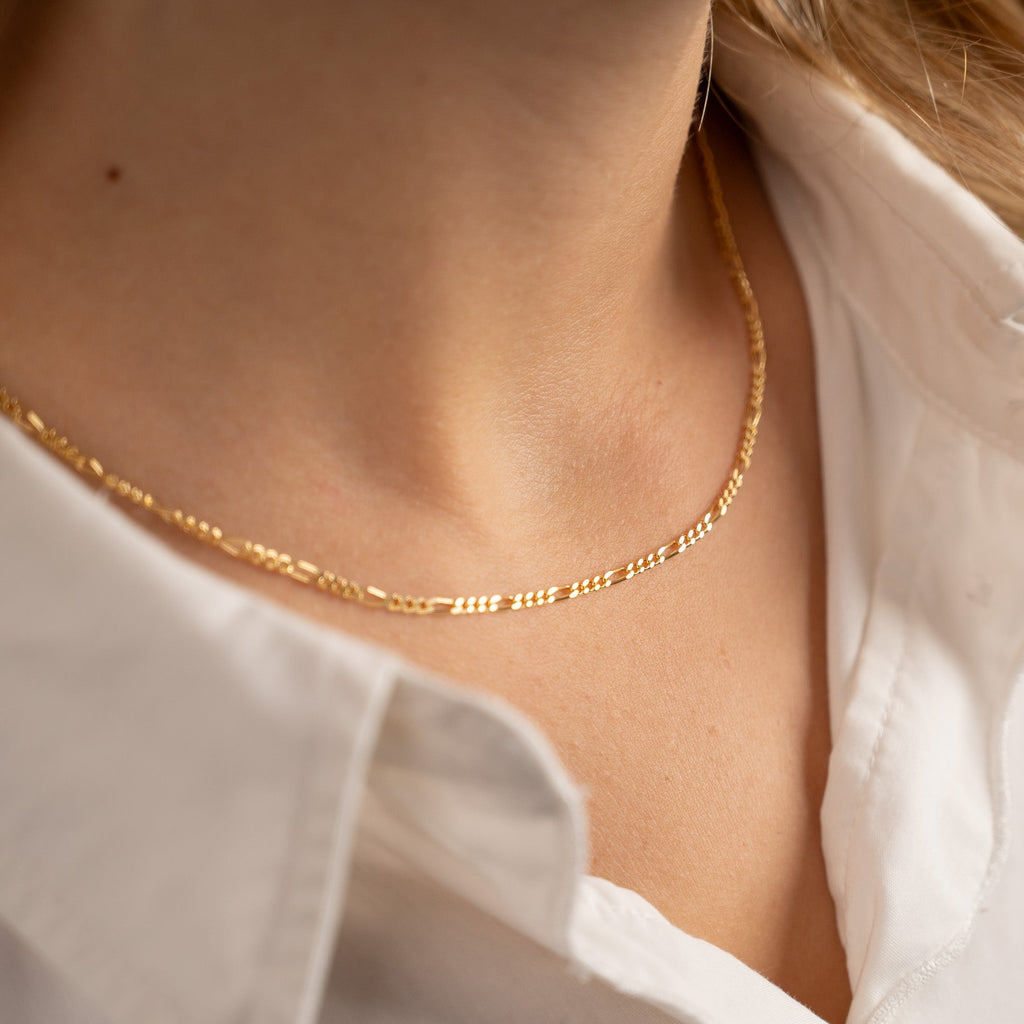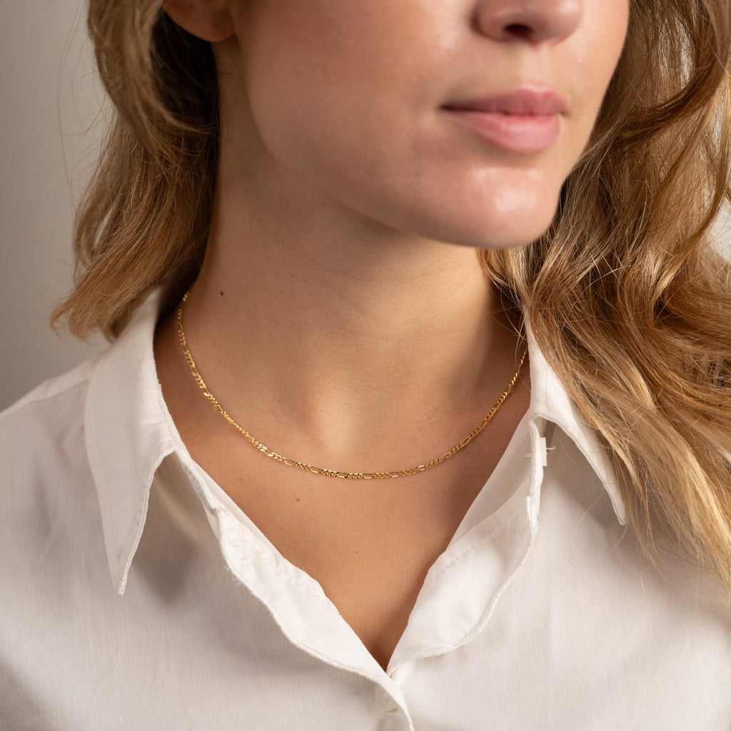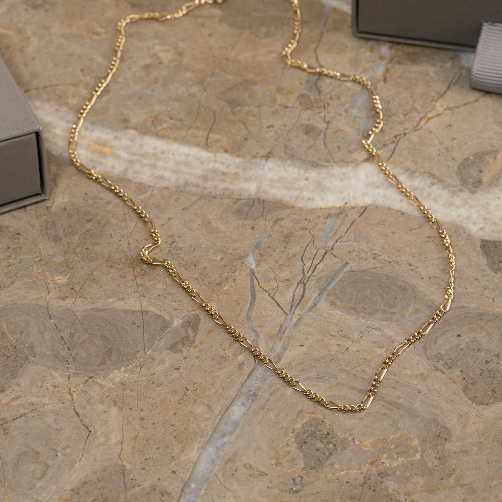 Vårt halskjede Uma har et elegant og moderne uttrykk. Kjedet er en ny vri på det klassiske panserkjede, siden kjedet består av et mønster av tre små og et langstrakt ledd. Et elegant halskjede som passer godt til alle anledninger.