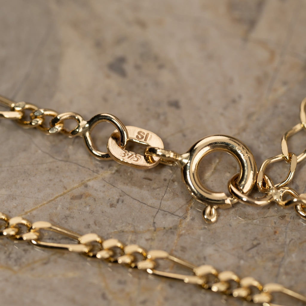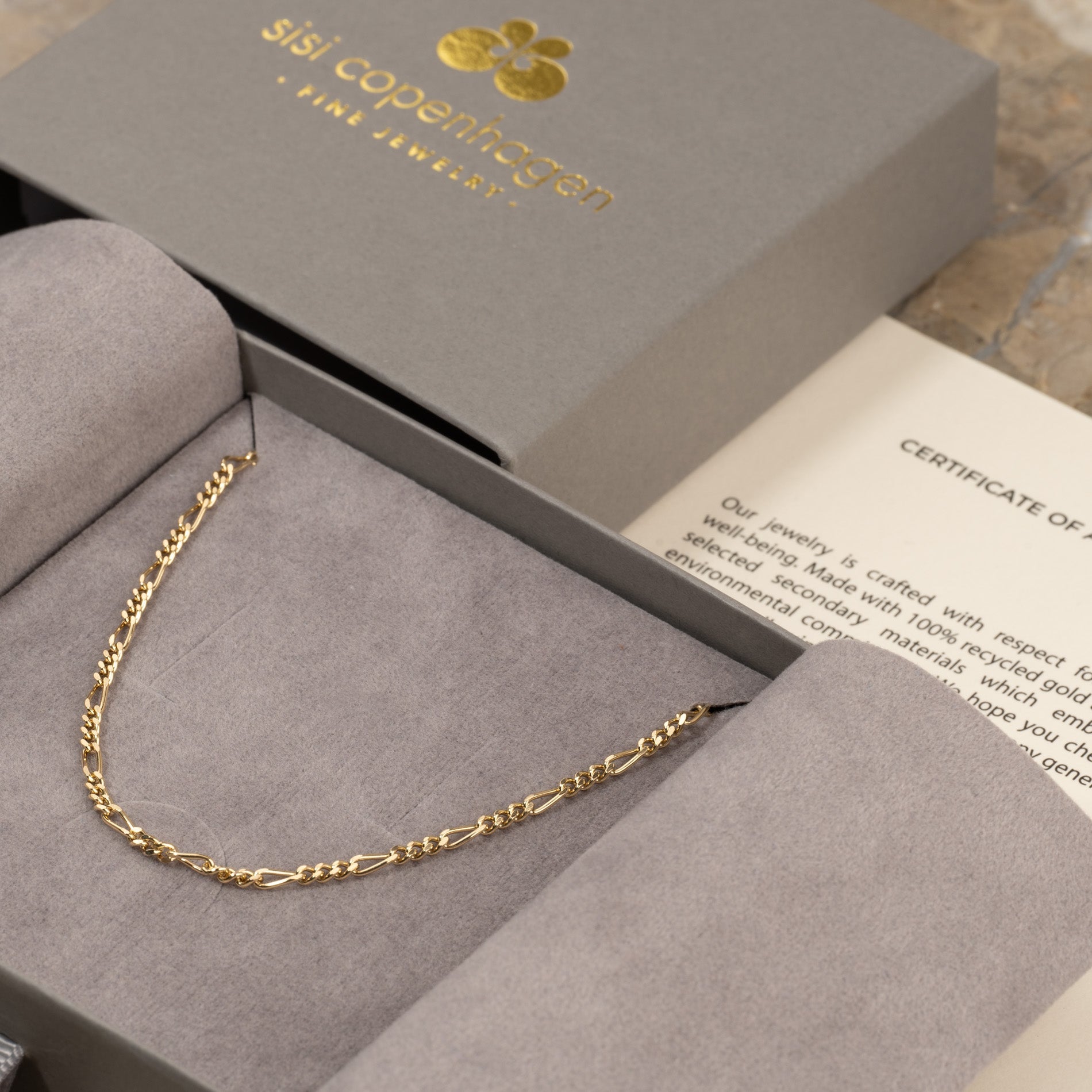 - Med 9 kt massivt gull får du et ytterst holdbart smykke som både er vanntett og beholder sin gullglans hele livet.