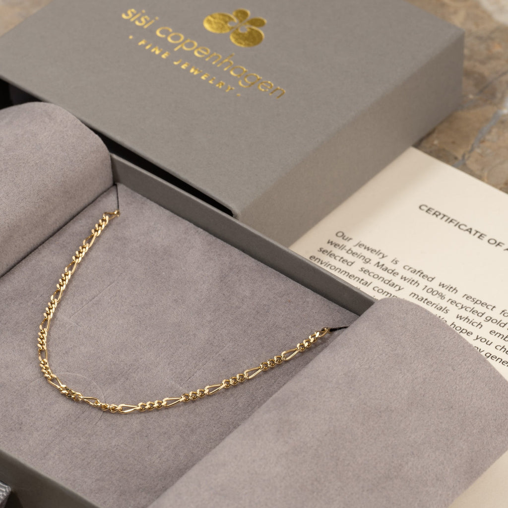 Alle våre 9kt Solid Gold-smykker kommer i vakker pakking.