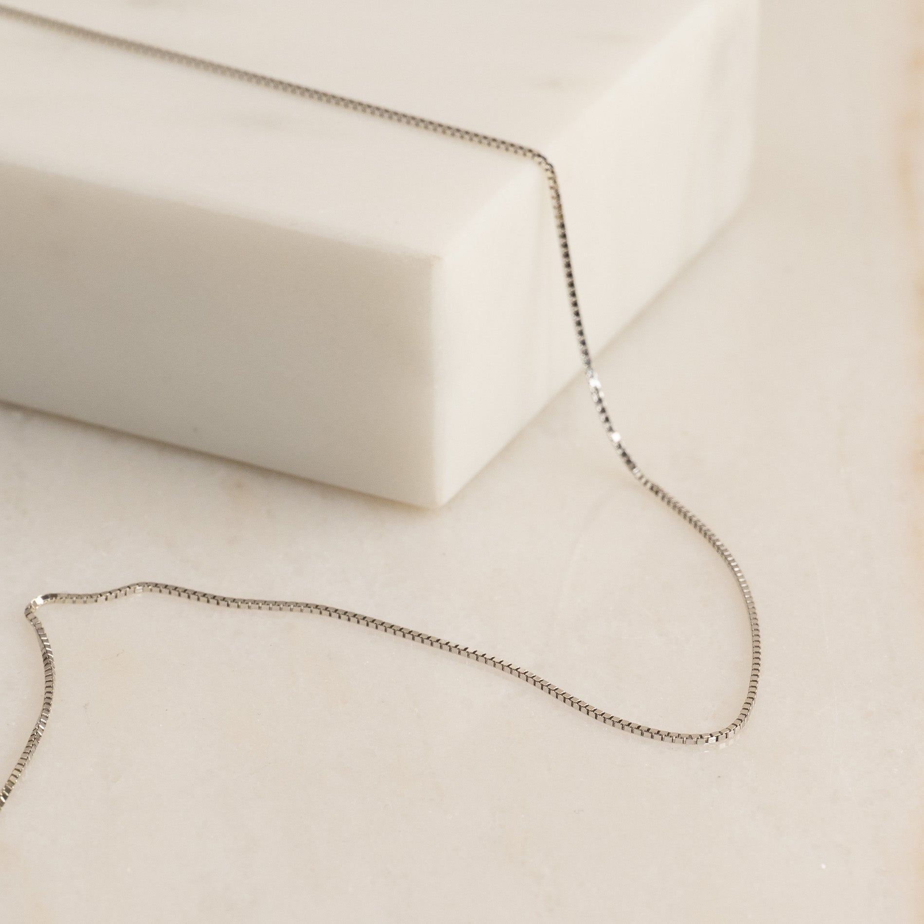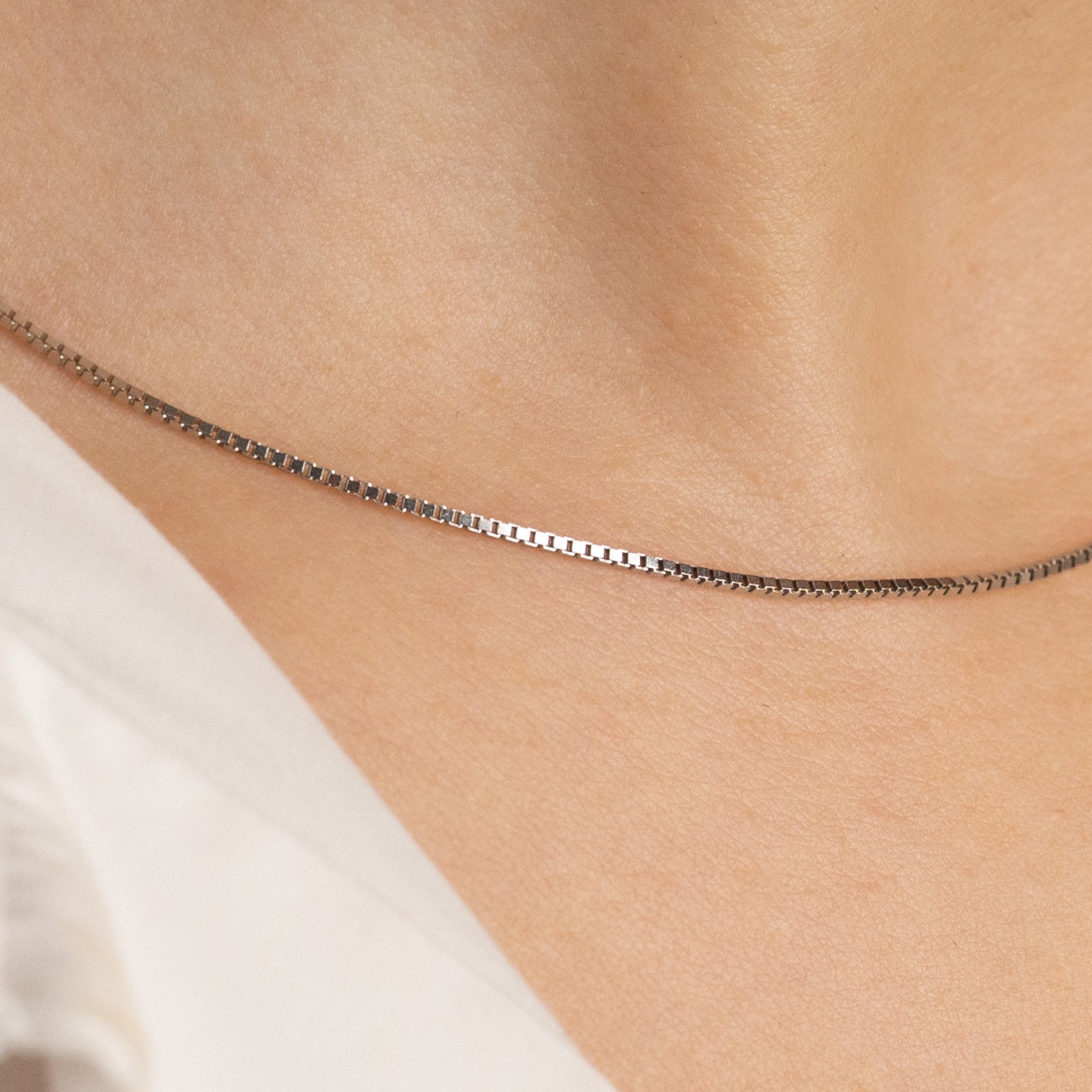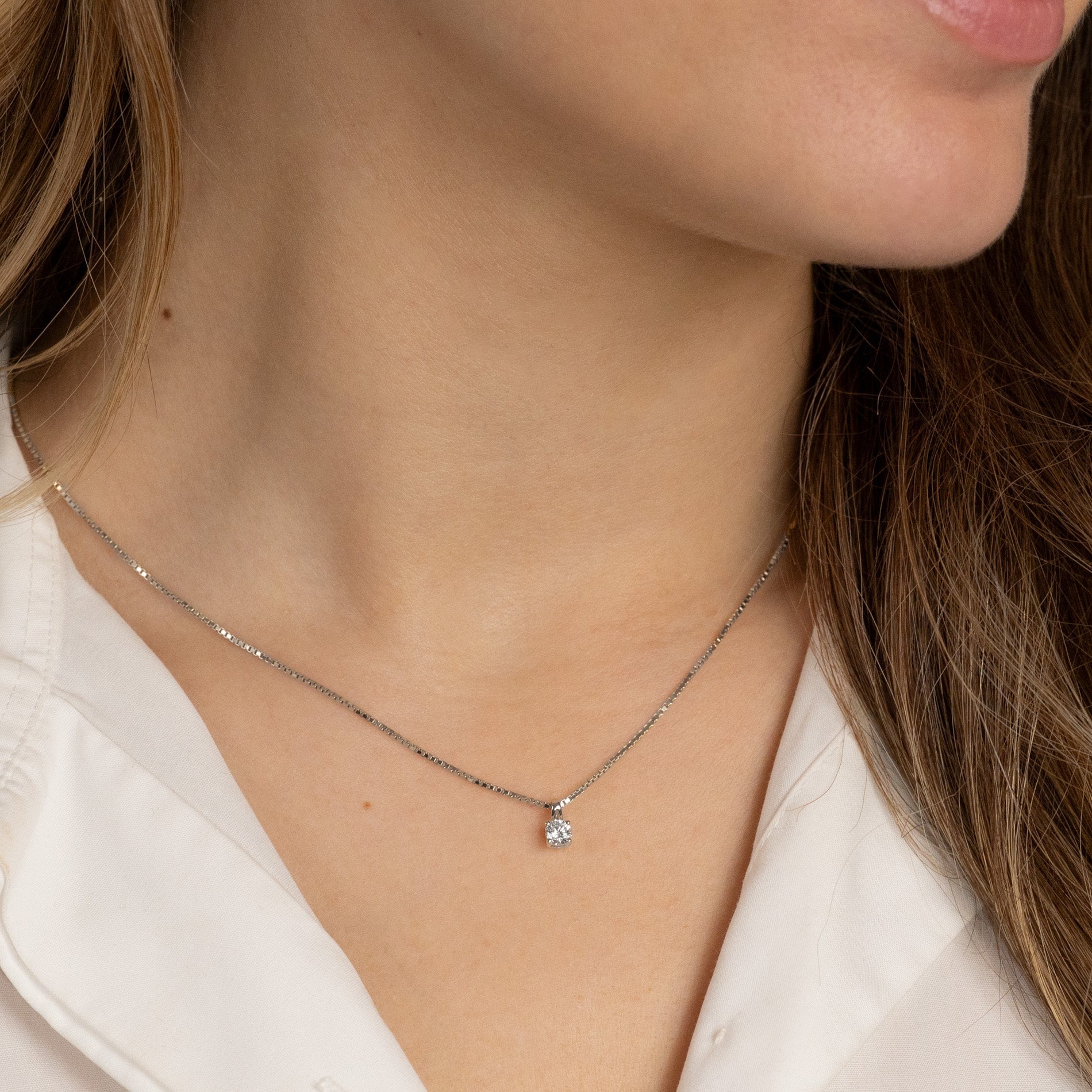Vårt eksklusive venetianske kjede i 14 karat hvitt gull passer perfekt sammen med vårt anheng i 14 karat hvitt gull fra Diamond Collection.
