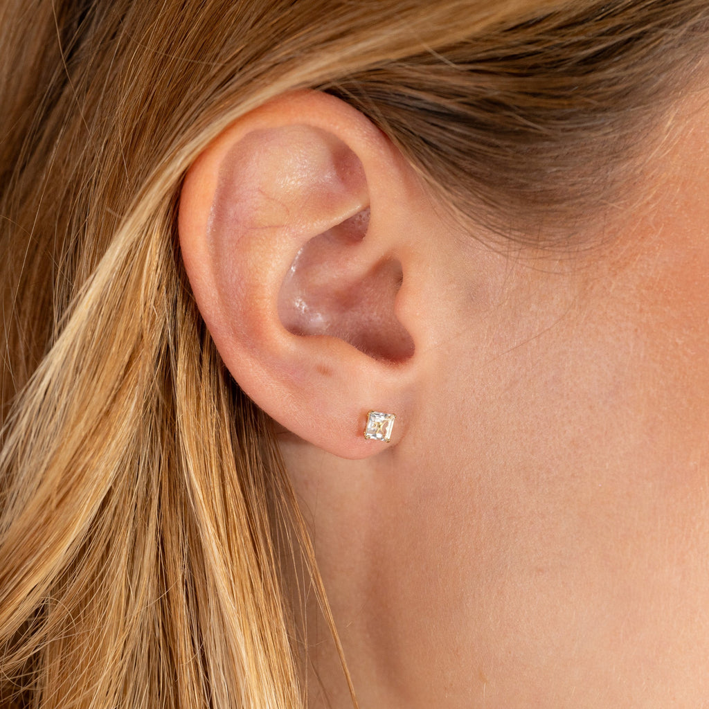 TETRA WHITE TOPAZ SOLID GOLD STUD EARRING